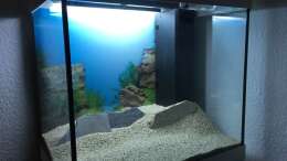 21.02.2017: Wasser wieder klar, Filter in Betrieb genommen und mit dem Filterschlamm aus meinen anderem Aquarium angeimpft. Wegen dem geringen Wasserstand auch gleich die Guppys umgesetzt.