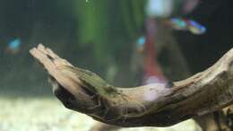 25.05.2017: Mit dem Ergebnis des "Stutzens" von gestern überhaupt nicht zufrieden, daher wurde heute das kompl. Aquarium umgestaltet. Der Calari-Rock, 2 Gro??e Amazonasschwertpflanzen und der grüne Wendtsche Wasserkelch wurden entfernt, die gro??e Mangrovenwurzel wurde anders im Aquarium positioniert und es wurden wieder Ableger des grünen Wendtschen Wasserkelchs eingesetzt. Da ich noch eine Welshöhle aus Keramik herumliegen hatte, wurde diese mit integriert und aus einer schräggestellten Schieferplatte wurde noch eine Höhle gebaut. Zwerg-Speerblatt auf Mangrovenwurzel gebunden.