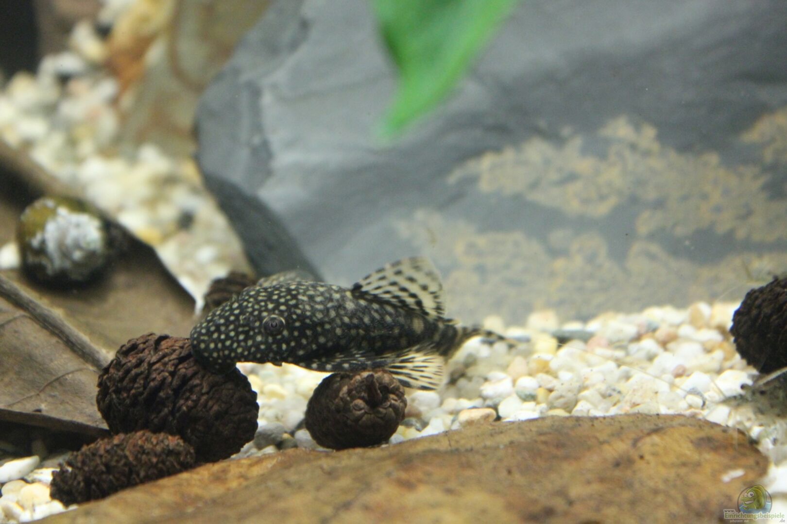 30.04.2017: grüne Punktalgen bilden sich überall im Aquarium.