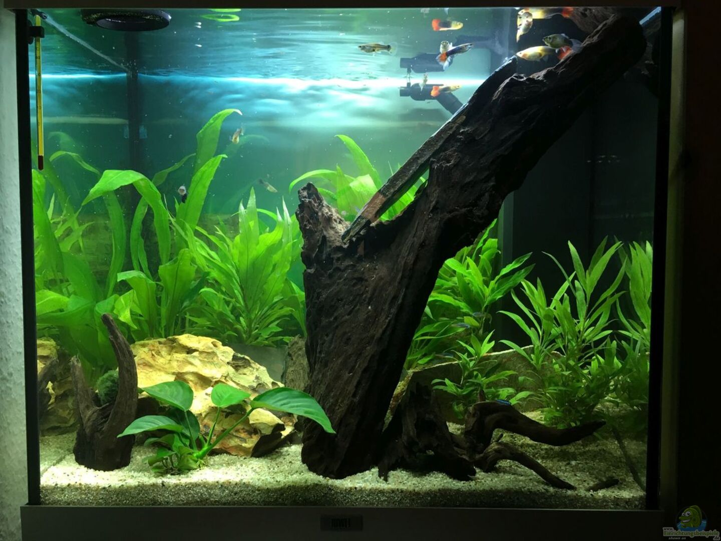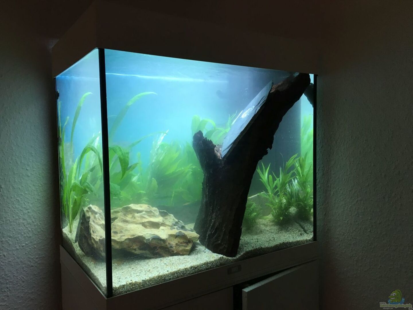 30.05.2017: Platz des Zwerg-Speerblatts und der Fingerwurzel getauscht, da das Futter immer auf dem Zwerg-Speerblatt gelandet ist. Da das Zwerg-Speerblatt auch mit wenig Licht zurecht kommt, passt der Platz unter der gro??en Wurzel.