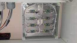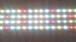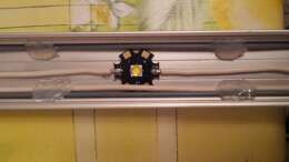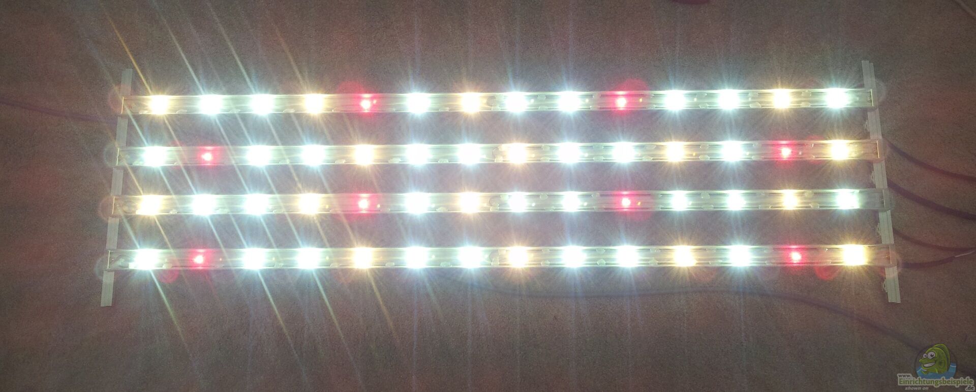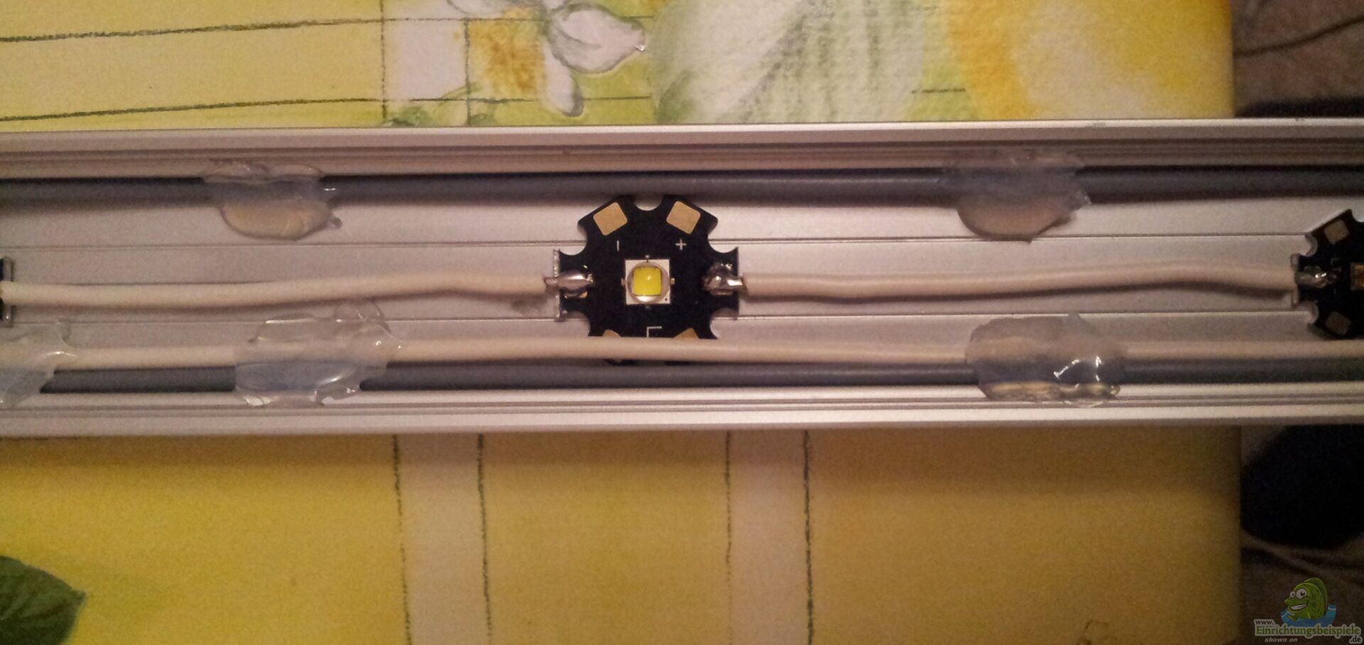 Auf 4 Alu-Schienen geklebt mit durchsichtiger Abdeckung die abgedichtet wurde damit kein Kondenswasser eintritt. Zur bessern Kühlung wurden die 4 Leisten mit gro??en Aluplatten miteinander verklebt.