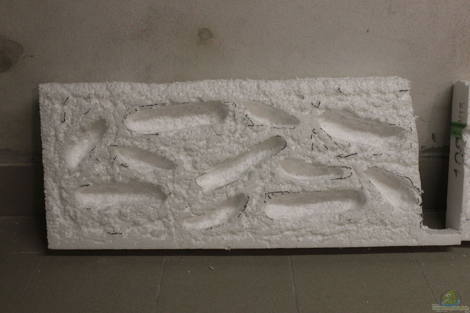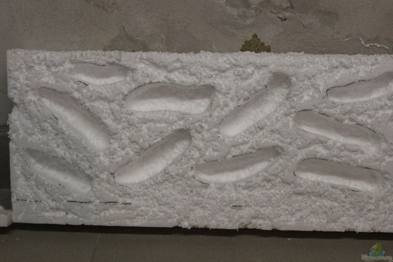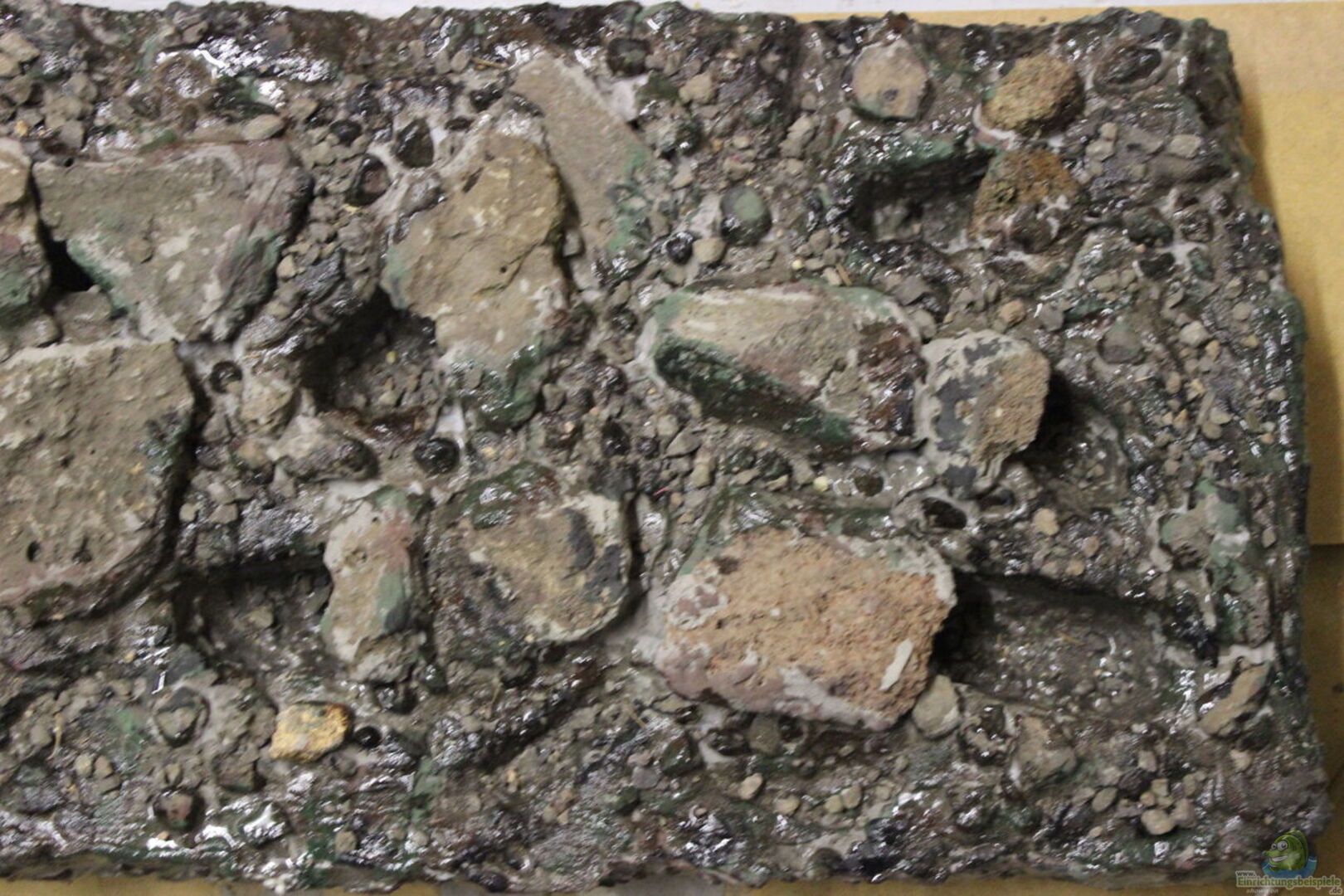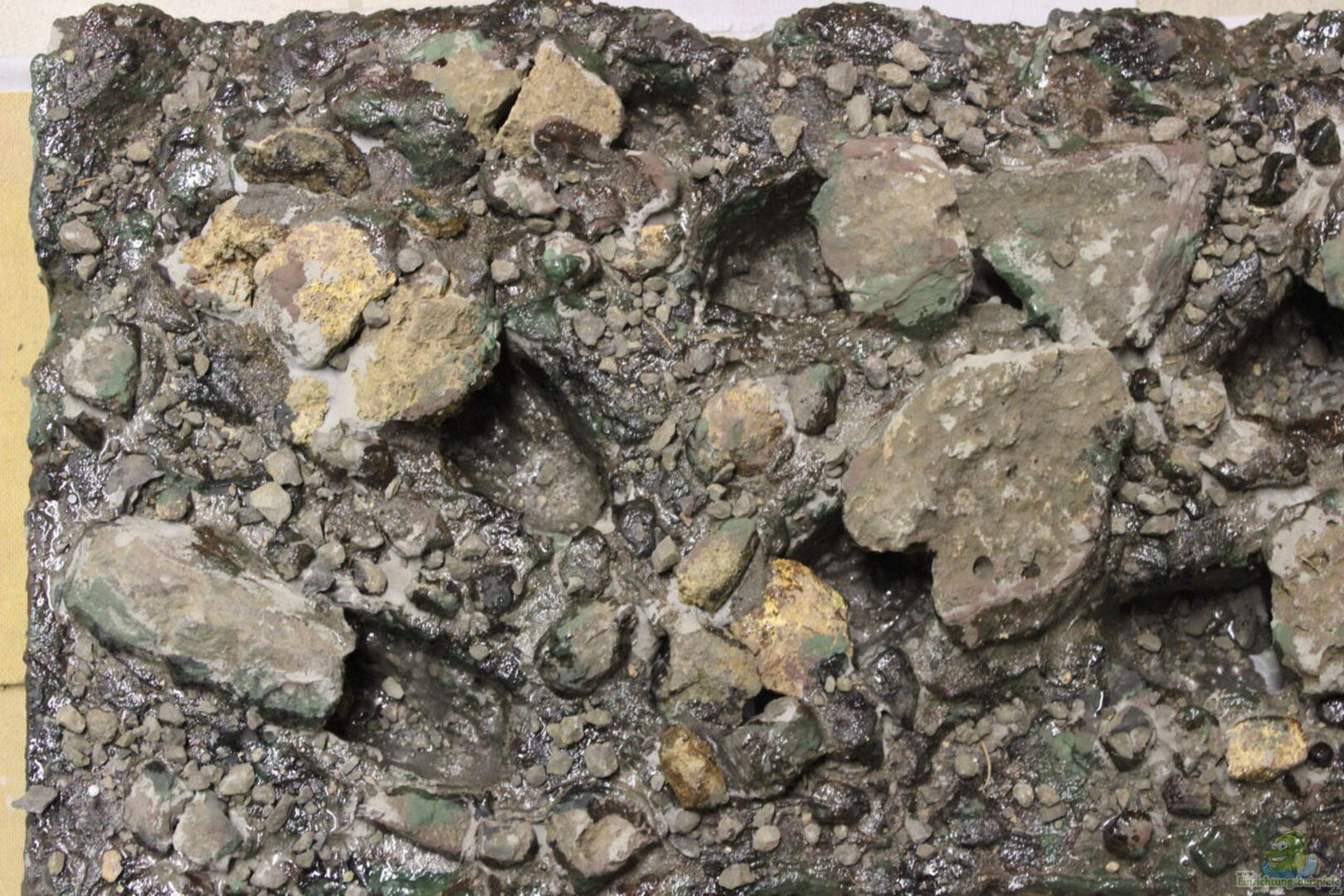 Die selbstgemachte Rückenwand stellt wieder mal den wichtigsten Einrichtungsgegenstand dar. Steine wurden in der Buckligen Welt gesammelt und zum Auto geschleppt. Die Rückwand wurde zuerst aus Styropor zurechtgeschnitzt, anschlie??end mit Fliesenkleber bearbeitet, die Steine wurden zurecht geklopft bzw. es wurde aus kleineren Brocken Steinmehl mittels Vorschlaghammer erzeugt, Steine wurden mit Fliesenkleber angeklebt, anschlie??end mit Farbe "verschönert" und zu allerletzt auch noch mit Epoxyharz geschützt und dann mit "Steinmehl" bzw. kleineren Steinchen bestreut um glatte Reflexionflächen zu vermeiden