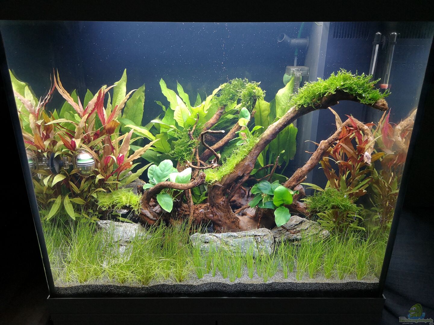 Aktuell bin ich in der Phase angekommen wo die Kieselalge sich ausbreitet und die Wurzeln von Bakterienstämme überzogen sind. Des Weiteren habe ich gemerkt dass sich beim letzten Anubias Kauf Cyclops mit ins Becken geschlichen haben. Der KH Wert hat sich deutlich verschlechtert.
