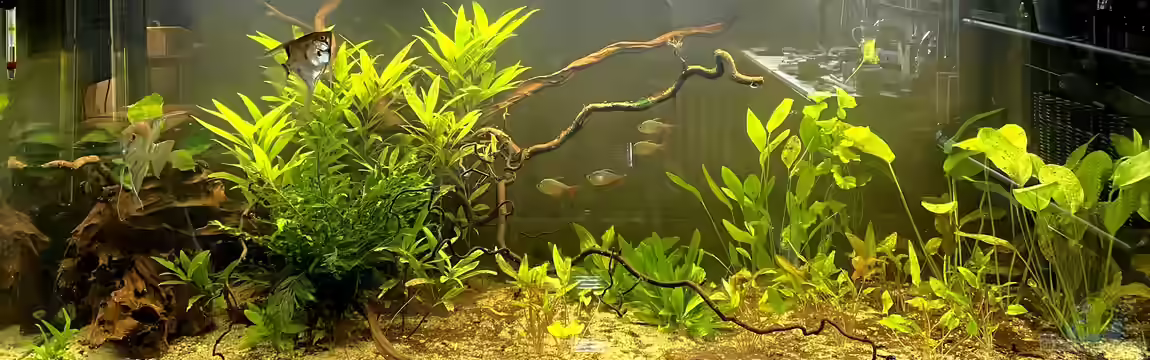 Optisch gefällt mir dein Aquarium sehr gut. Ich finds immer super, wenn Aquarien natürlich aussehen und nicht zu 100% geplant. Das ist dir sehr gut gelungen.