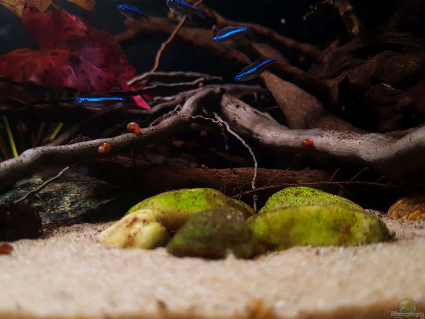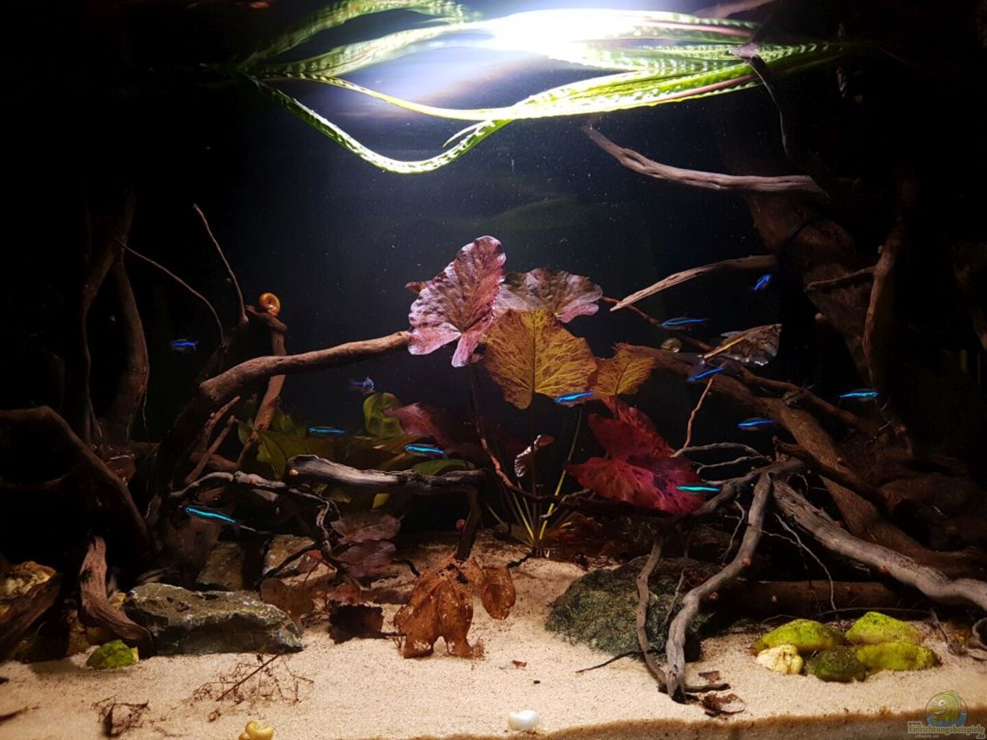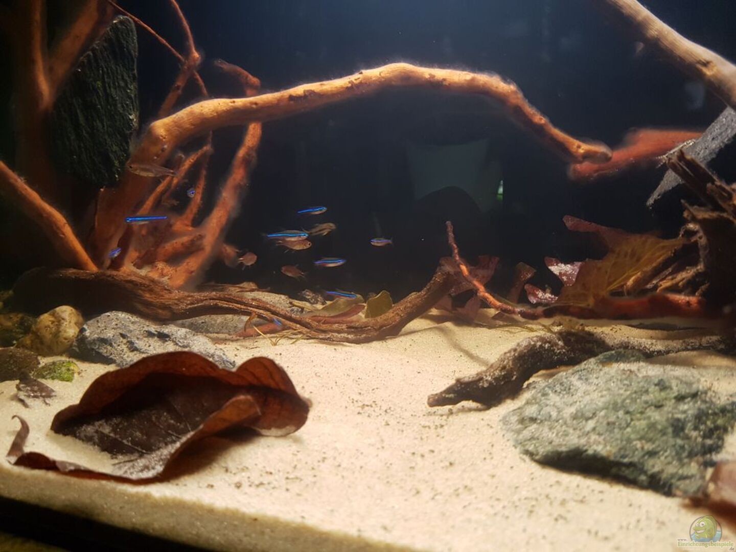 Das erste Aquariun welches ich einmal komplett ohne Pflanzen betreiben wollte. Hat nicht ganz geklappt ;o) Drei kleine Pflänzchen haben es doch ins Aquarium geschafft. Kann aber sein, dass ich die Grünpflanzen doch noch einmal herausnehme. Mal schauen was mir letztendlich besser gefällt.