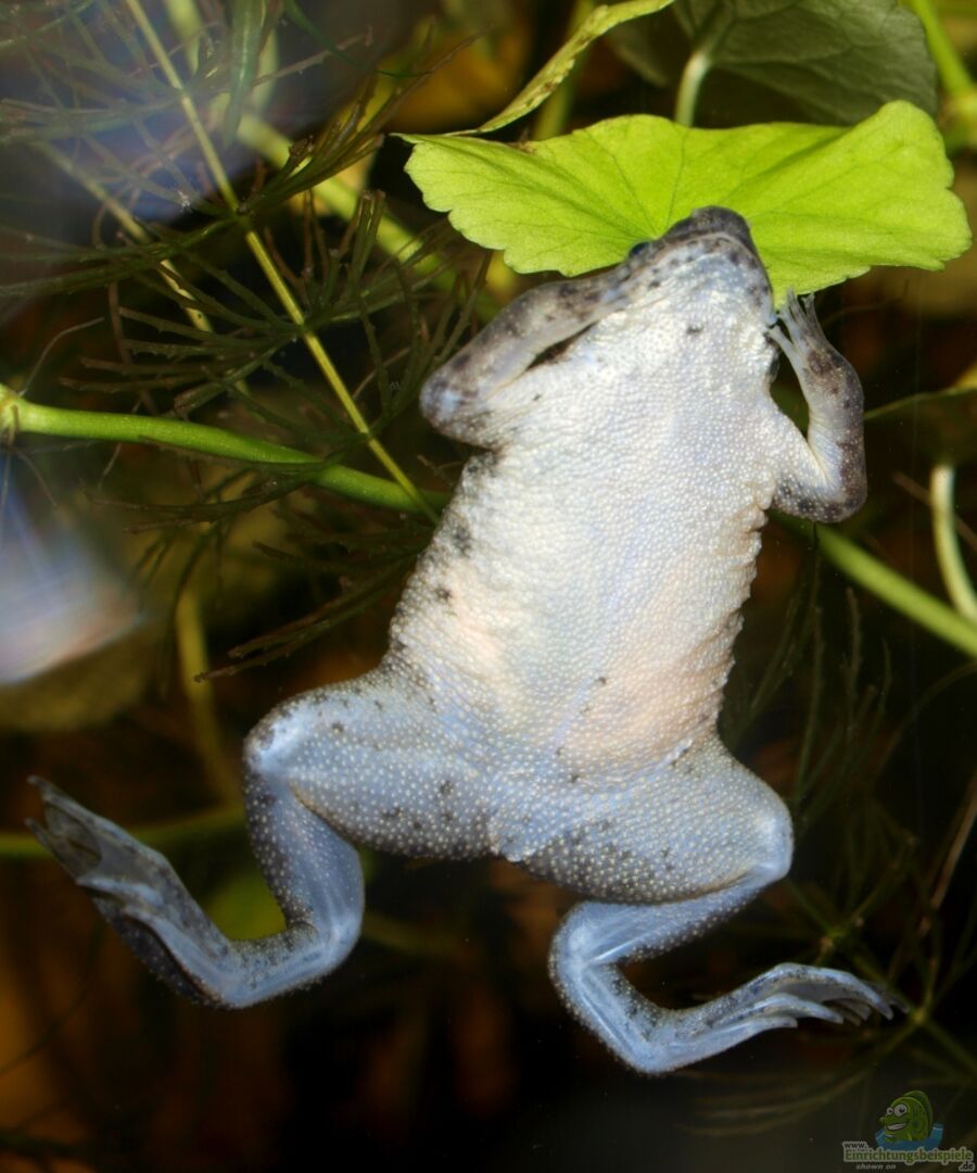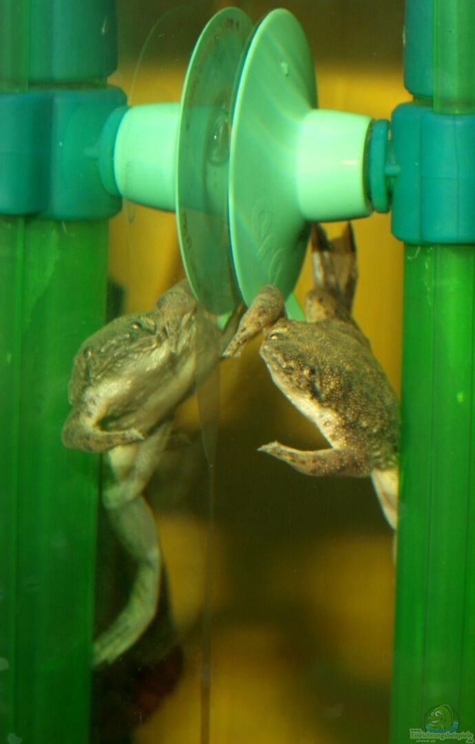 Ich versuche schon seit längerem, eine einzelne Kaulquappe aufzuziehen- leider entwickelt sie sich nicht so gut, was eventuell daran liegen könnte, dass ich sie anfangs zu kühl stehen hatte. Da die Weibchen aber eigentlich fast immer Laich tragen, dürfte es bei einem ernsthaften Versuch recht einfach mit der Nachzucht sein.