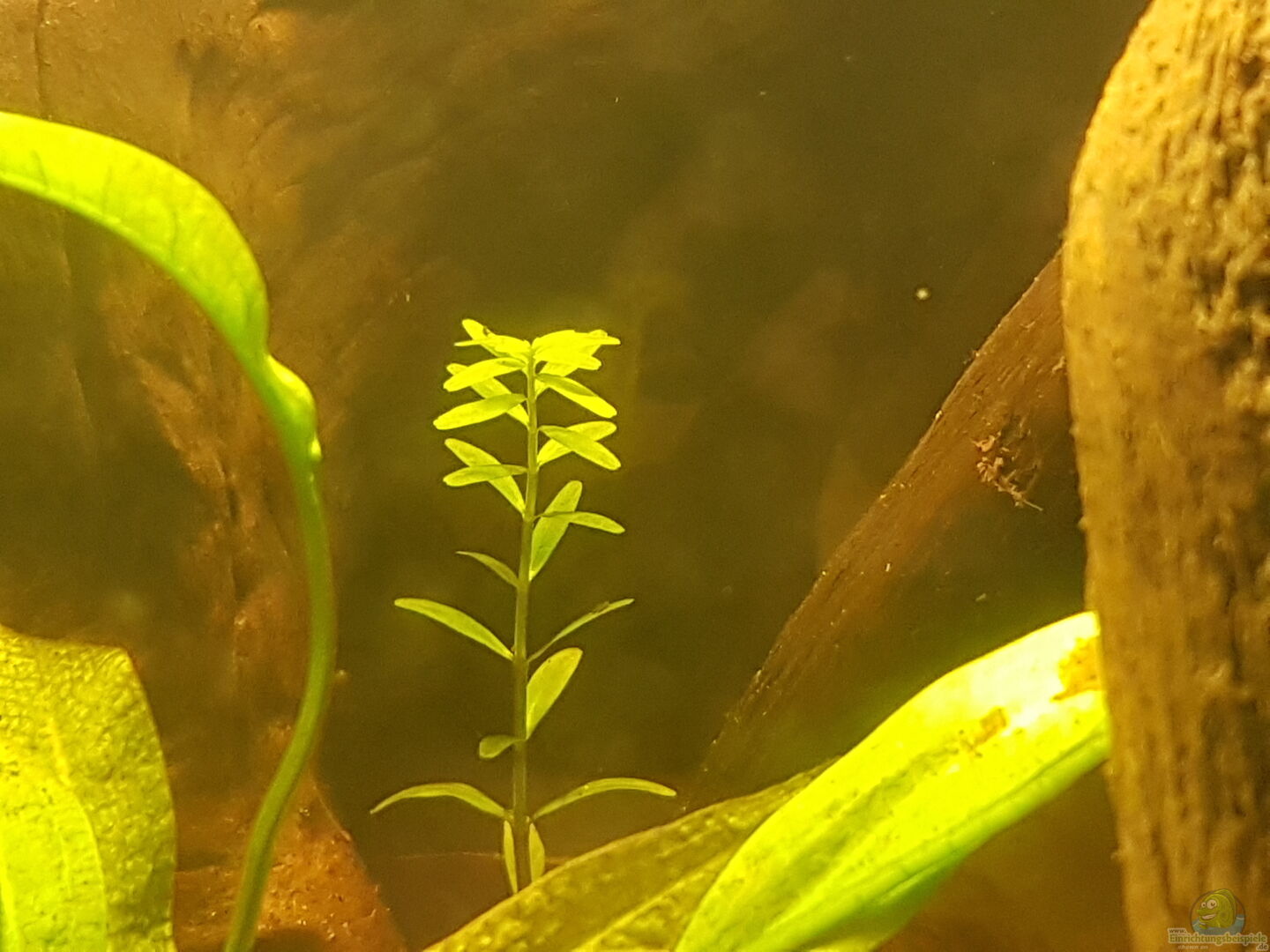 1x aus dem Garnelen Aquarium eine schmalblättrige Pflanzenableger genommen und hinten rechts am Filter eingepflanzt, sie wird schön Buschig und die Blätter bekommen eine rote Farbe. Ich wei?? nur nicht wie sie hei??t.