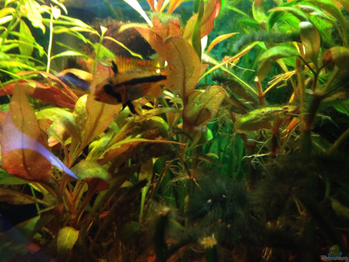 19.04.15 Pflanzen zurückgeschnitten / letztes Neal den Filter gereinigt wird bald ersetzt :) / Skimer gereinigt/ Kakaduzwergbuntbarsche haben junge etwa 12 Stück und die kleines sind etwa2-3mm gro?? und schwimmen bereits mit den Eltern durch das Becken / Echinodorus Ozelot blüht erneut