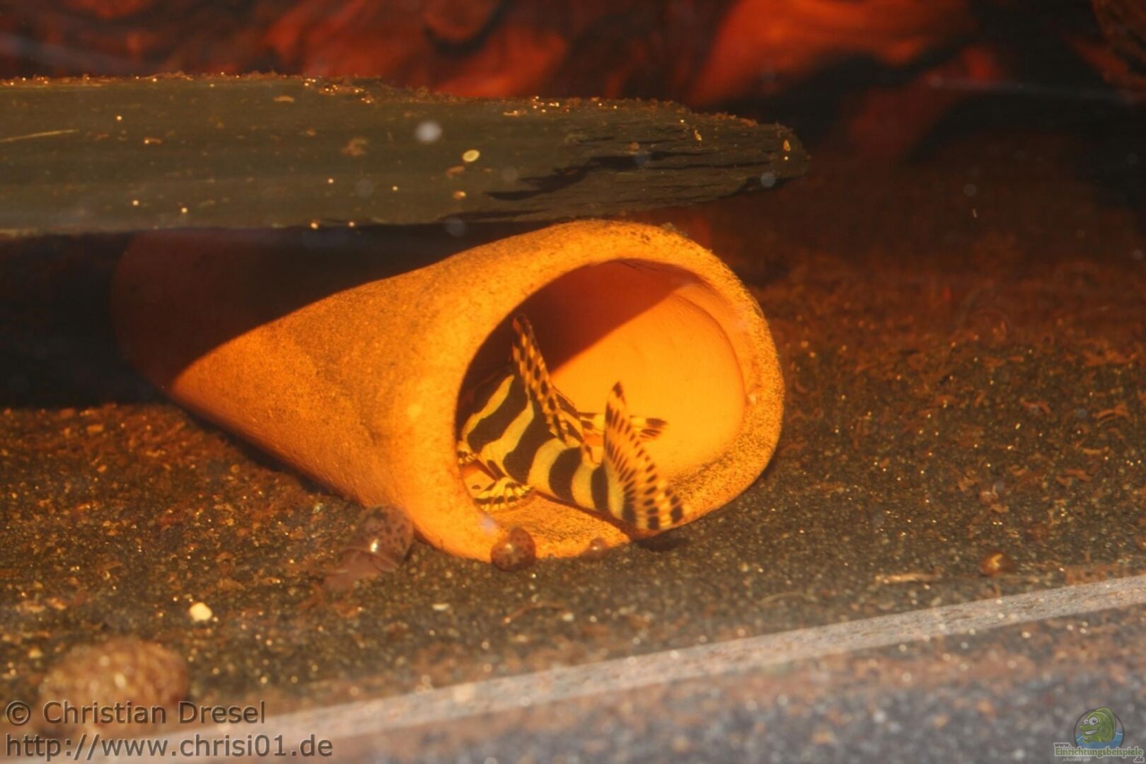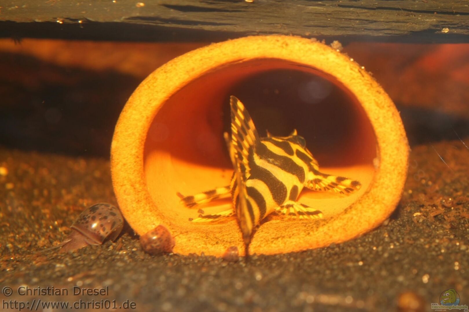 Dieser L-Wels besitzt mit seiner schwarz/wei??en Zeichnung ein sehr schönes Muster. Er ist für Welsanfänger geeignet und versteckt sich nicht soviel wie andere L-Welse. So ist es auch Möglich, diese Tiere ab und zu mal Tagsüber im Aquarium zu beobachten.
