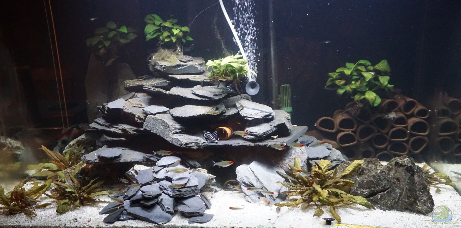Um ehrlich zu sein hat dies viel mit Zufall und Flickwerk zu tun. Könnte ich das Ganze noch einmal von Grund auf neu planen, dann würde ich einiges anders machen. Ich wollte ursprünglich einfach ein schönes Aquarium fürs Wohnzimmer, das einen Schwerpunkt auf der Haltung ausgefallener Harnischwelse haben sollte. Die ursprüngliche Einrichtung und Besetzung sah ganz anders aus. Mehr Wurzeln und Pflanzen, eher ein klassisches Südamerika-Becken.