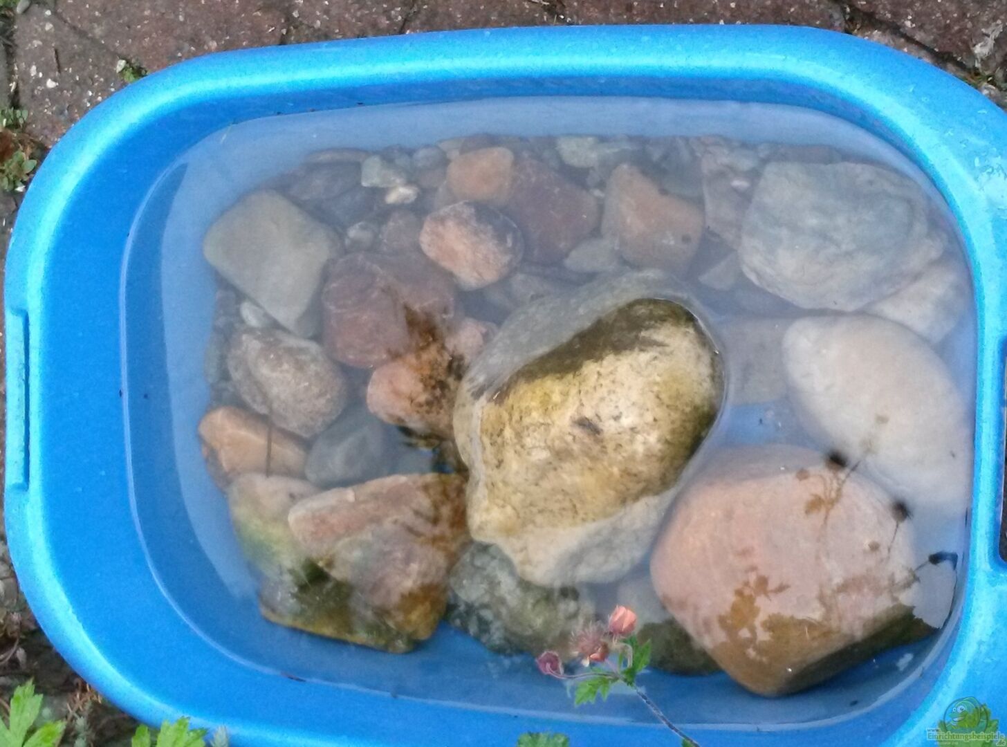 5 Tiere sollten es sein, das Becken eigentlich nur übergangsmä??ig, bis im Keller ein Grö??eres steht. Nach knappen 2 Stunden wars dann aber schon vorbei mit dem Frieden, das erste Paar hatte sich gefunden und die Tiere haben sich aufs übelste gekloppt. Daher blieb das Pärchen drin und die 3 anderen sind in ein Notbecken im Keller umgezogen, weil der Teich gerade von Macropodus ocellatus blockiert wird.