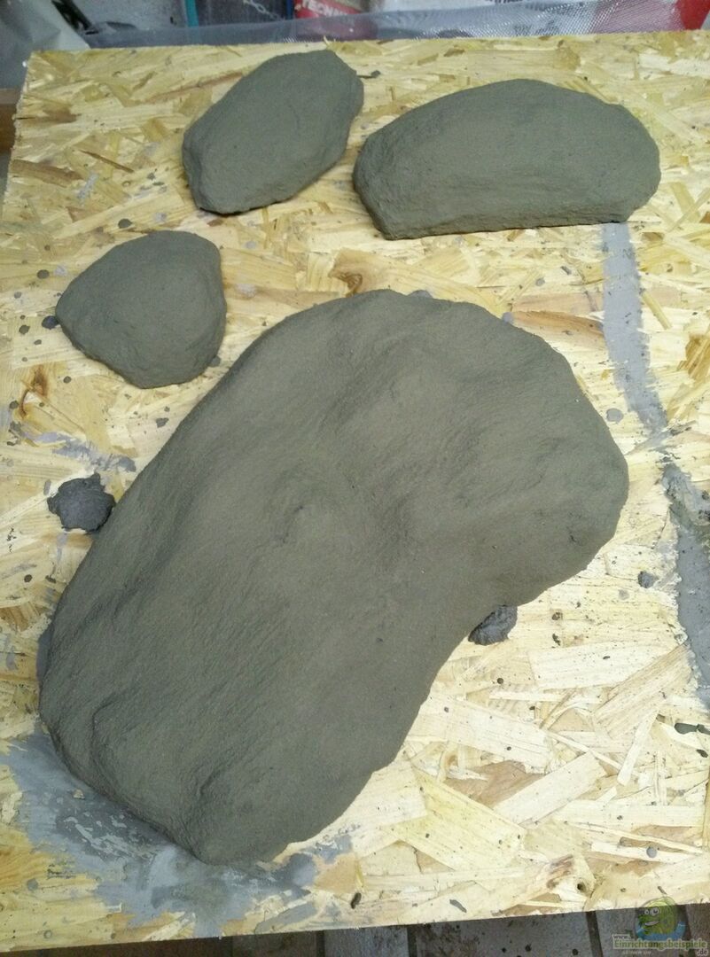 Die Rückwandmodule wurden aus Styropor und Portlandzement komplett selbst hergestellt. Habe mich dabei von Biotopaufnahmen sowie ein paar Beispielen aus dem Netz inspirieren lassen. Einige Module der Rückwand ragen teilweise ca. 10cm aus dem Becken heraus. Habe am Ende nicht alle Teile verwendet und musste das gro??e nachträglich nochmal anpassen, hatte mich irgendwie leicht vermessen.