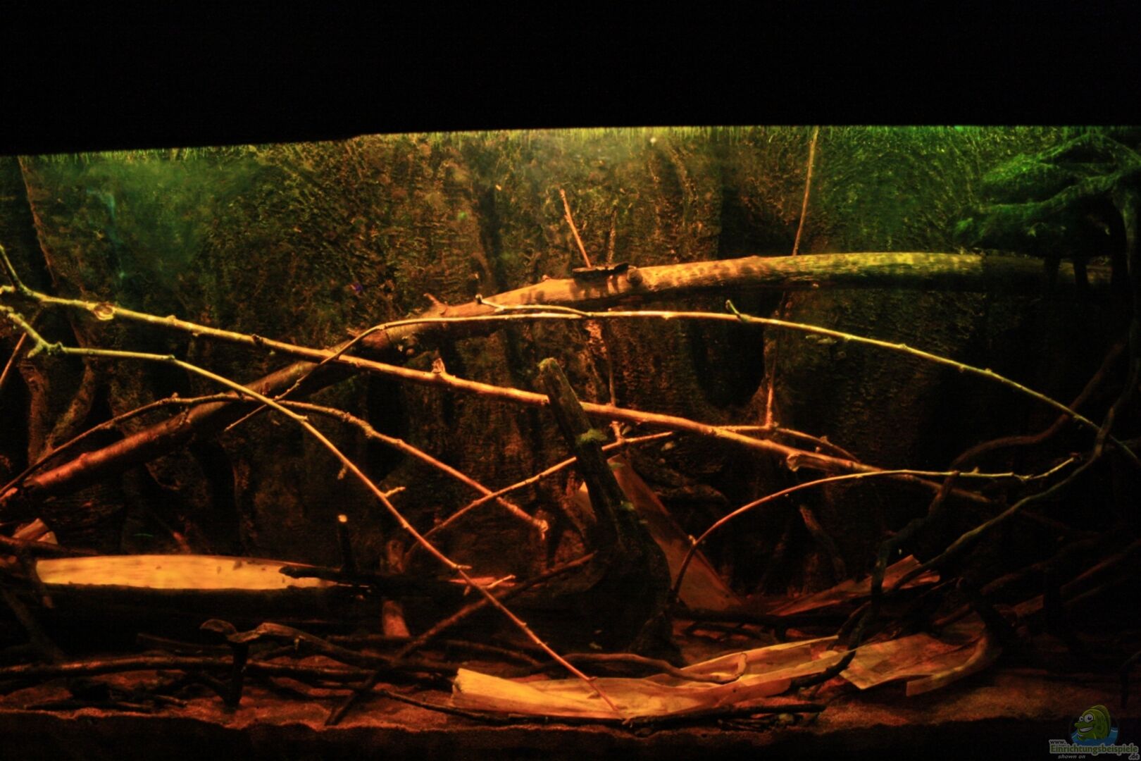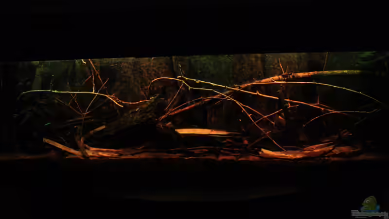 Normalerweise sind die Uferregionen durch überhängenden ??sten und Sträuchern gesäumt, die teilweise bis auf die Wasseroberfläche herunter hängen und somit nur bedingt Licht an dieser Stellen zulassen, dies habe ich versucht nachzuahmen.