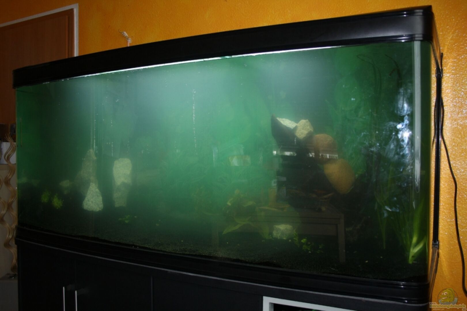 Gru? in die alte Heimat und ein paar Tips von mir: Das Becken ist natürlich sehr schön, auch eine top Grö?e! Die Einrichtung könntest Du aber noch viel besser gestalten. Als Erstes sollten viel mehr Pflanzen rein, schnellwachsende und flutende Arten, die Unterstände für die Diskus schaffen. Auch eine Schwimmpflanzendecke und Echinodorus dürfen in so einem Becken nicht fehlen. Die unnatürlich gebrochenen Granitstehlen (Dein Flei? in allen Ehren!) passen nicht zum Bodengrund und die Rückwandfolie täuscht eine Bepflanzung vor, die gar nicht vorhanden ist. Für eine Rückwand guck mal bei meinem Blog. Den pH könntest Du für die Diskus noch unter 7 bringen und die Temp. etwas erhöhen. Die Ausströmer sehen eigentlich aus wie für Luft und nicht für CO2? Viel Spa? beim weiteren Einrichten und für eine Bewertung bitte noch: Körnung Bodengrund, Beleuchtungszeit, Filtervolumen/Durchflu?, Pflanzennamen, Heizung, Wasserwechselintervall- und Menge, NO2, NO3, Futter und Besatz ergänzen. Bei Fragen helfen alle hier gern, mich eingeschlossen.