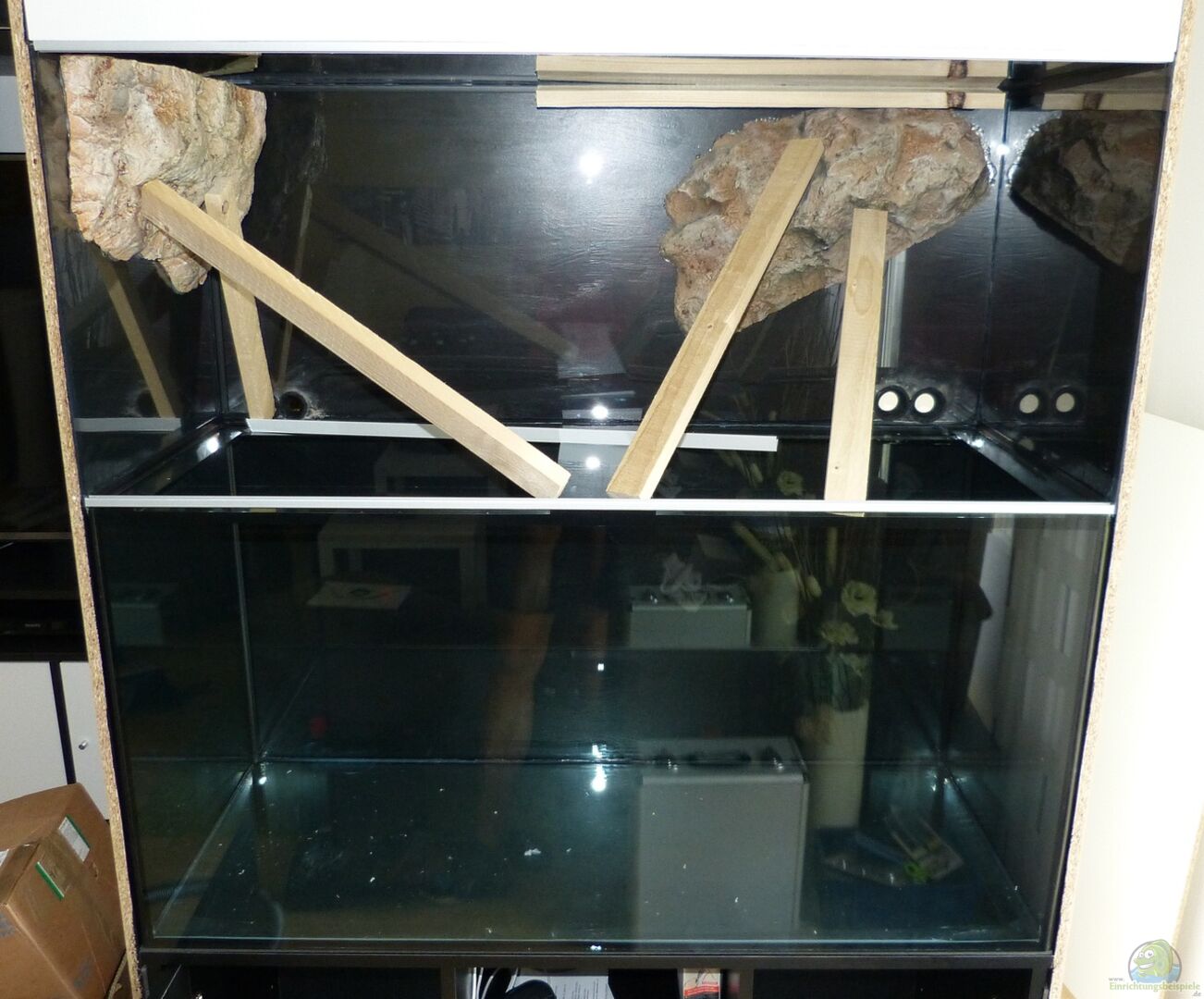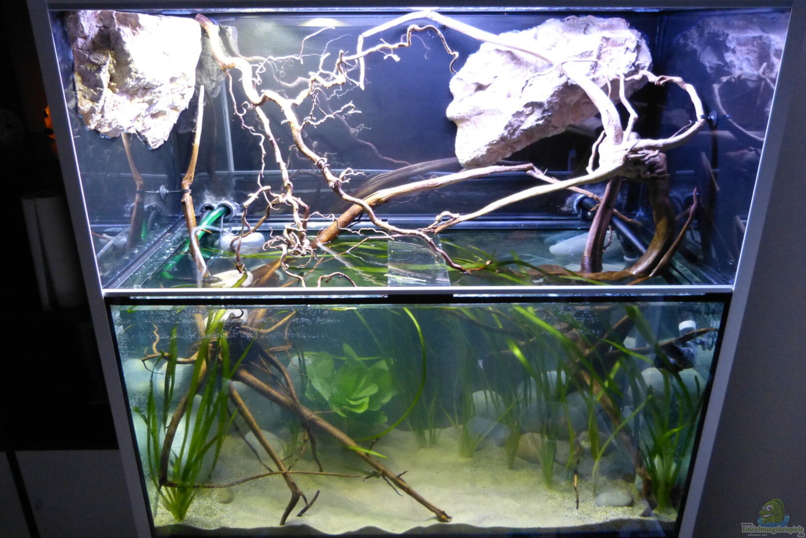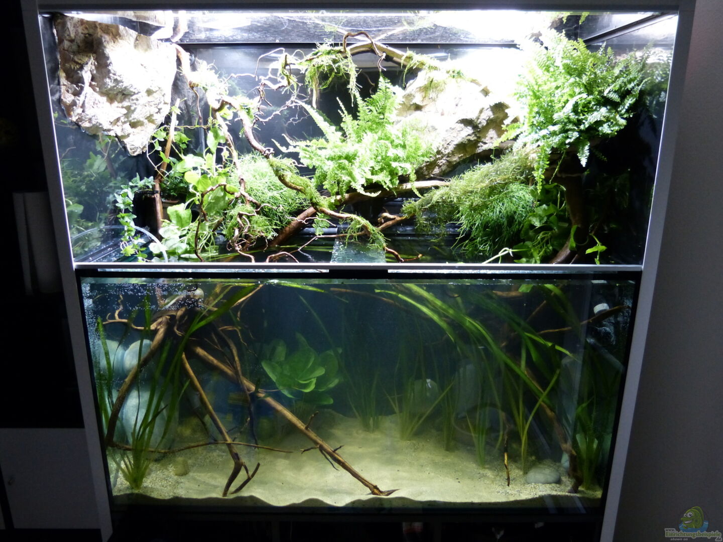 Es handelt sich um ein Paludarium. Der Wasserteil ist hierbei 120x50x60cm und der Landteil 120x50x50cm gro??.
