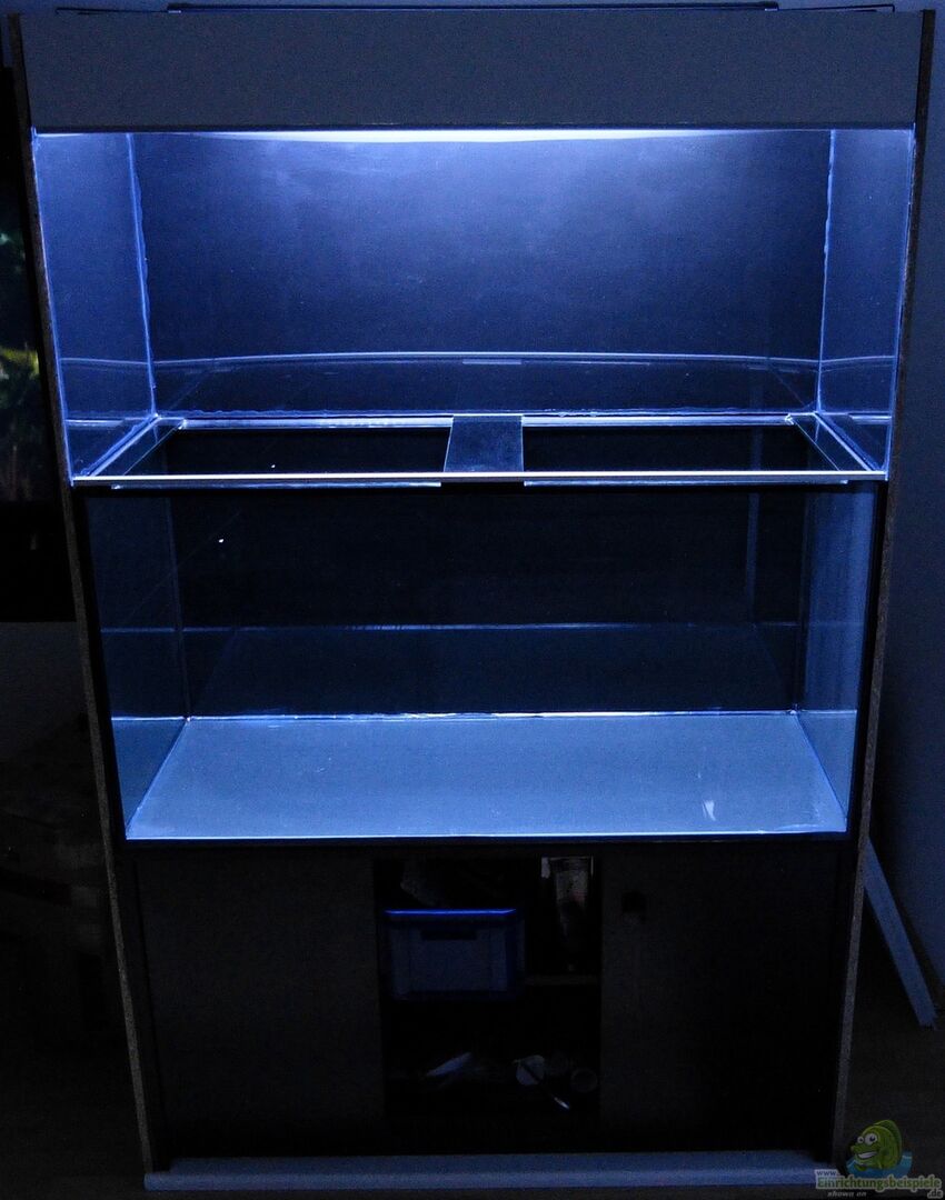 Das Grundgerüst bildet eine 120x50x125cm Aquariumkombination. Das Becken ist Wulstverklebt mit den Ma??en 120x50x60cm und der Unterschrank ist von einem Schreiner gefertig in den Ma??en 120x50x65cm.