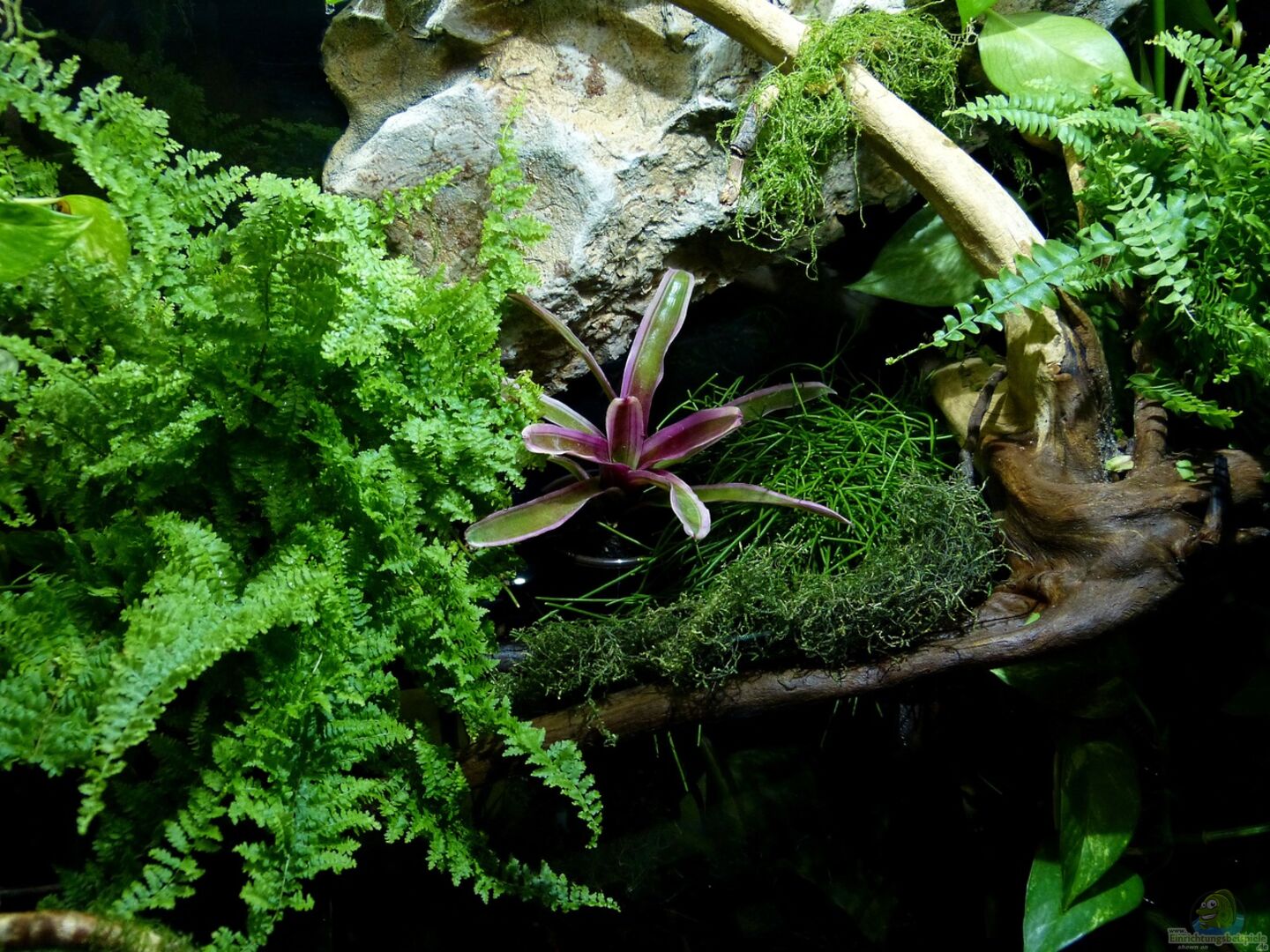 - Korkenzieherhaselnussäste von oben ins Paludarium gehangen
