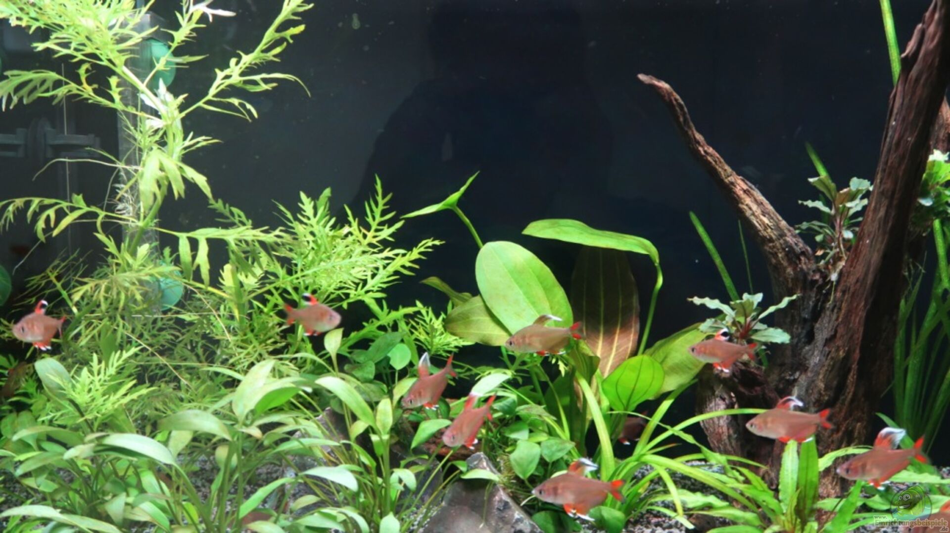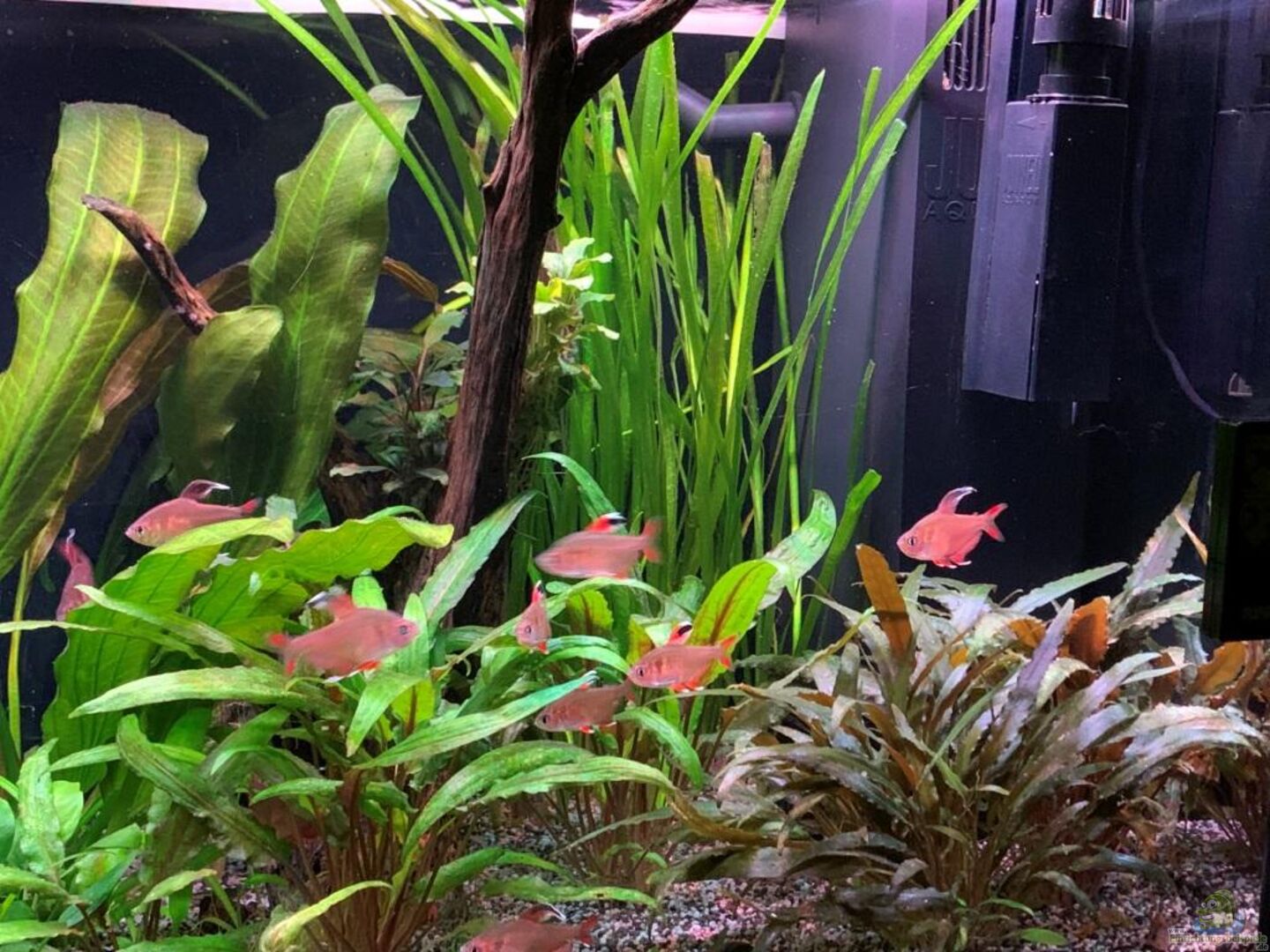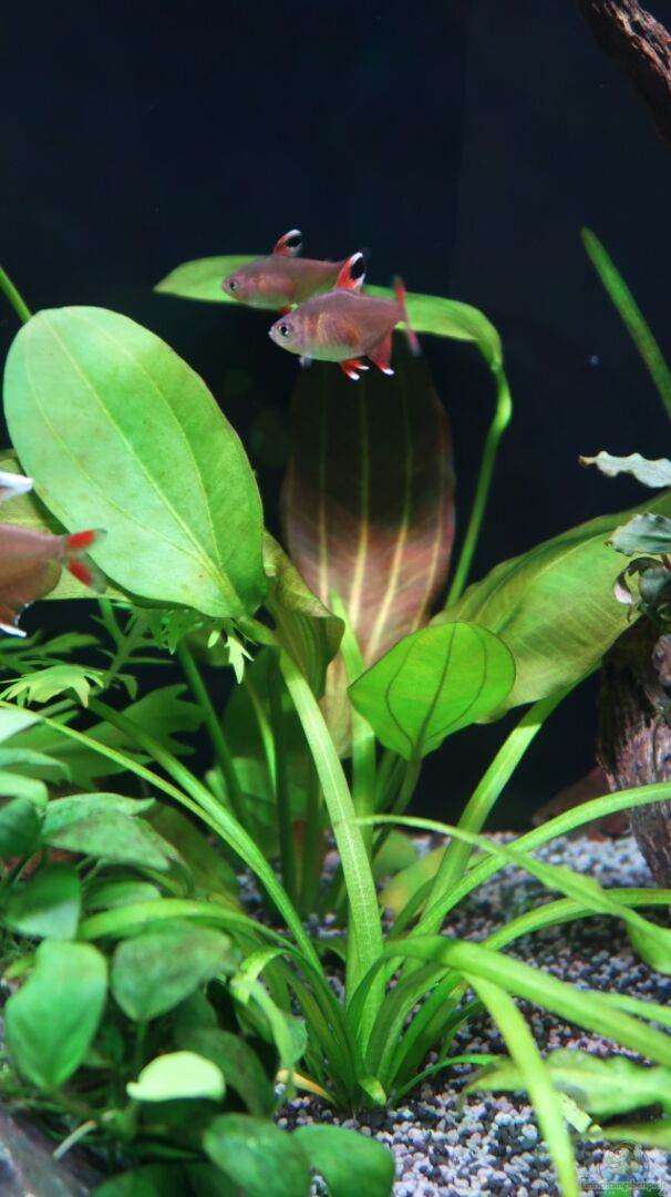 schönes Aqaurium hast du da aufgestellt. Ich selber bin ein gro?er Fan der Hyphessobrycon rosaceus. Habe aktuell noch zwei `Restbestände` die mittlerweile rd. 4 Jahre alt sind. Was ich bei diesen Tieren sehr empfehlen kann ist die Zugabe von Lebendfutter. Hier bieten sich besonders wei?e / Rote Mückenlarven an. Meine gehen aber an jegliches Lebenfutter ebenfalls dran (Tubifex, Artemia Nauplien, Glanzwürmer).