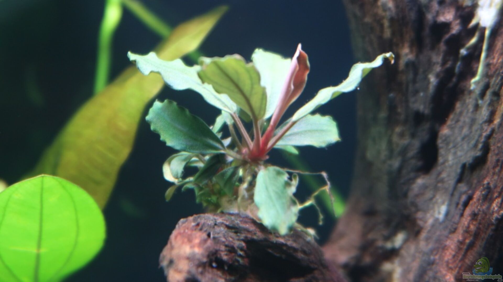 Bucephalandra spec. Wavy Green und sp.red auf Wurzel (Aufsitzerpflanze)