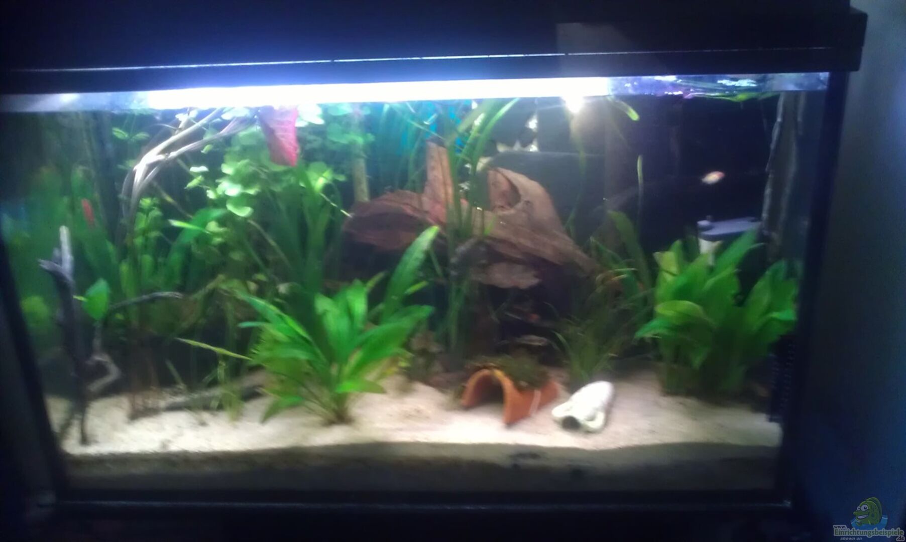 das sieht doch schonmal recht vielversprechend aus! Ein hübsches Aquarium hast du eingerichtet.