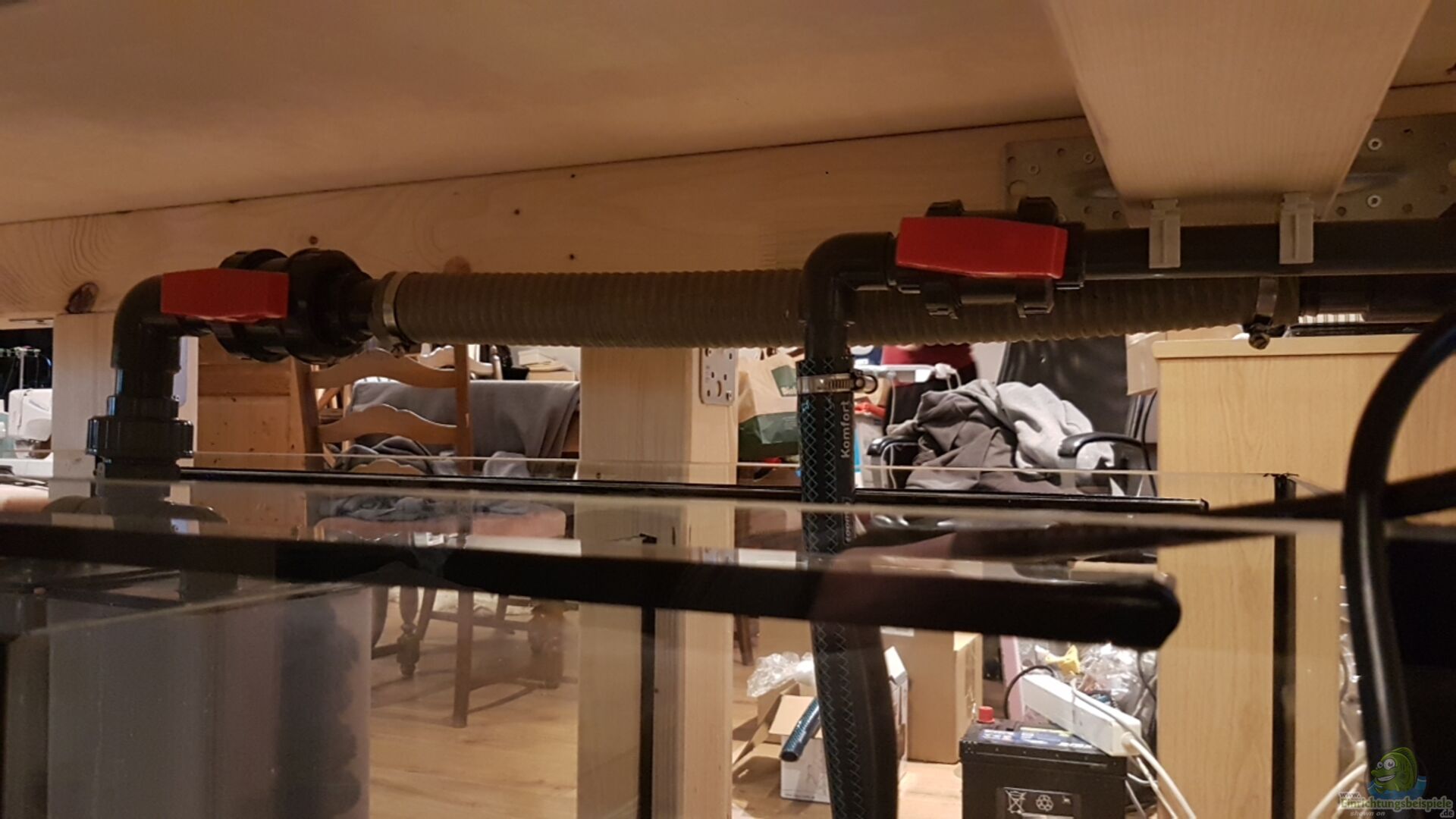 Gefiltert wird über einen Rieselfilter von Aquamedic mit ca. 50 Liter Bactoballs.