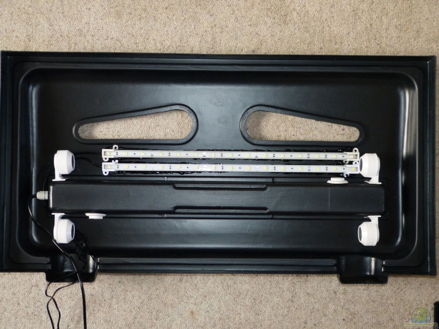 - umgerüstete Standart-Aquarienabdeckung mit 2 x 50cm LED-Lichtleisten
