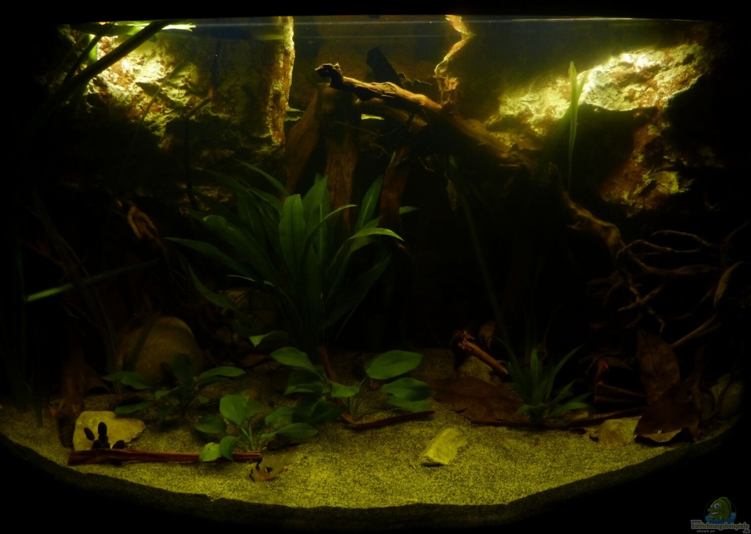 Wasser wird mit Easy-Life flüssiges Filtermedium und mit Amtra Eichenextrakt aufbereitet. Zudem bei jedem TWW getrocknete Seemandelbaumblätter, Bananenblätter, Eichenlaubblätter sowie Erlenzapfen.