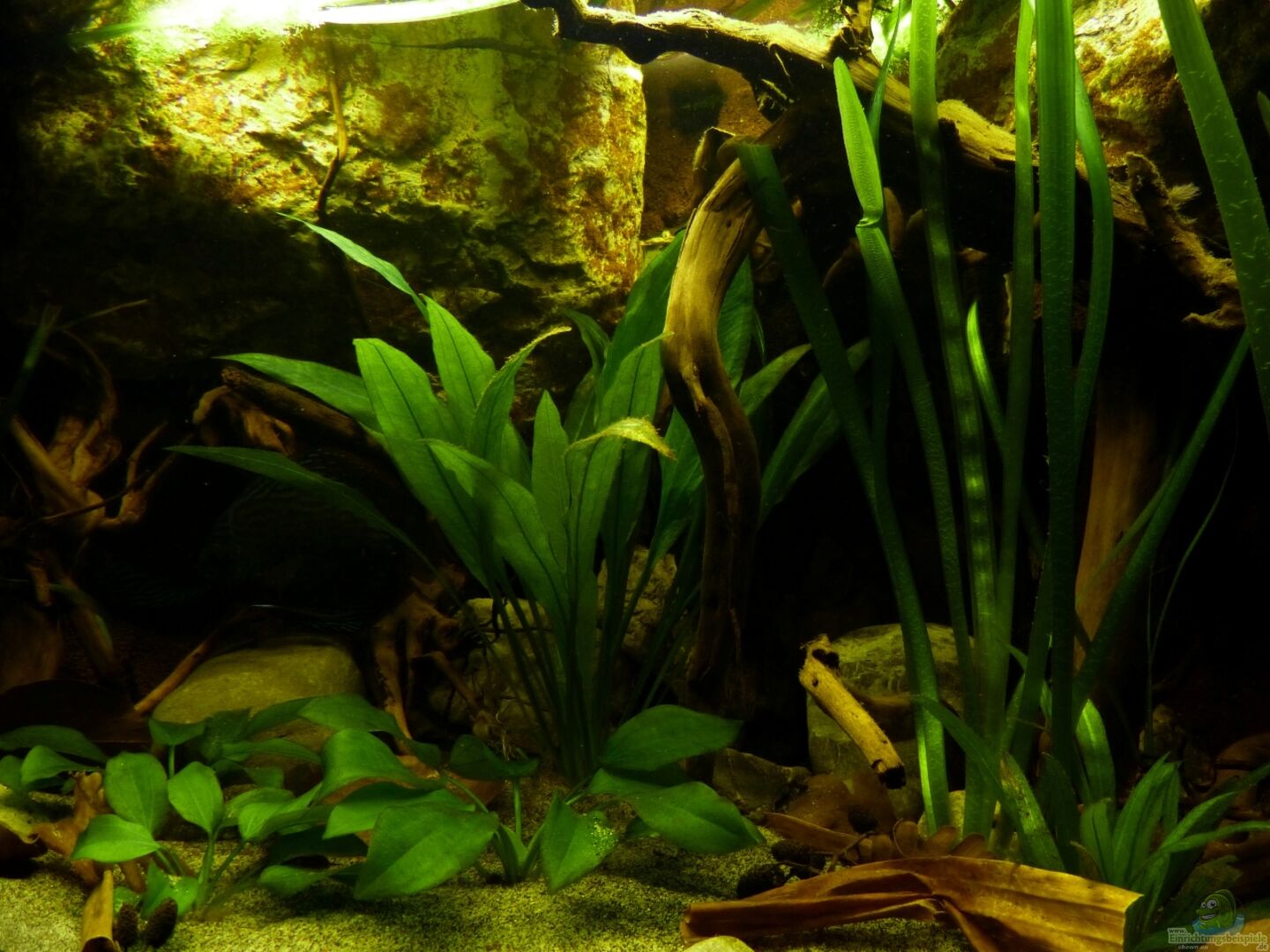 * die verschiedenen Steine sind vorallem im hinteren Beckenbereich an den Wurzeln verteil und bilden im Zusammenspiel mit den Tonröhren viele Höhlen und Verstecke für die Welse. Die Steine dienen zudem für die microgeophagus altispinosa als zusätzliche Laichplätze.