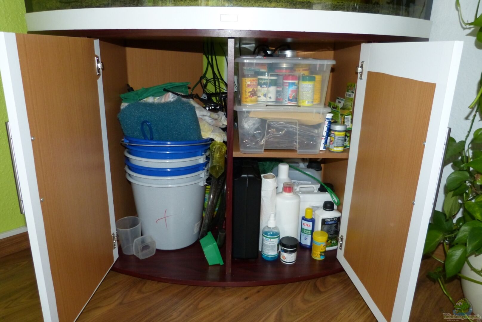 - wei??es Juwel Trigon 350 auf wengefarbenem Unterschrank mit wei??en Türen