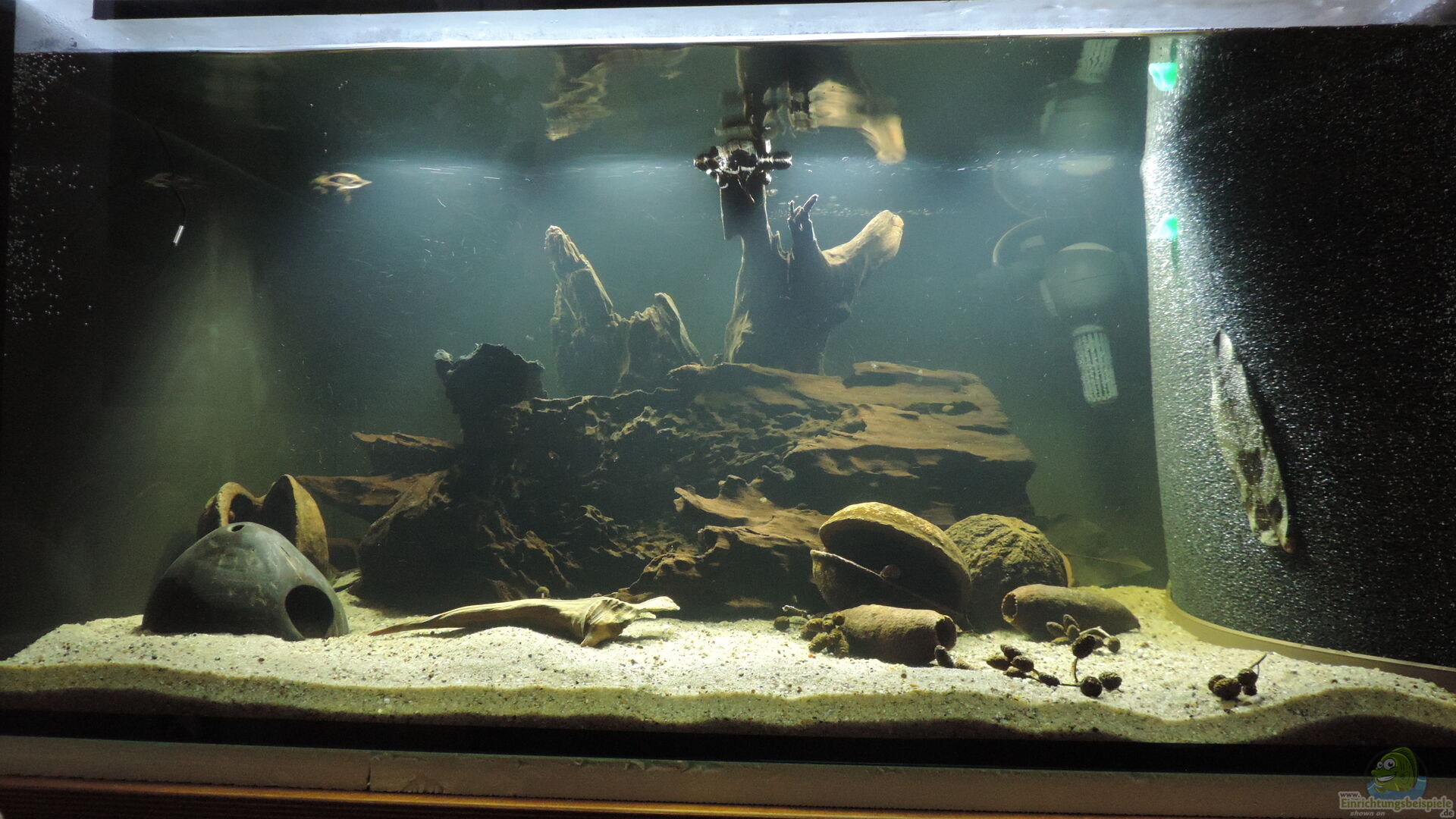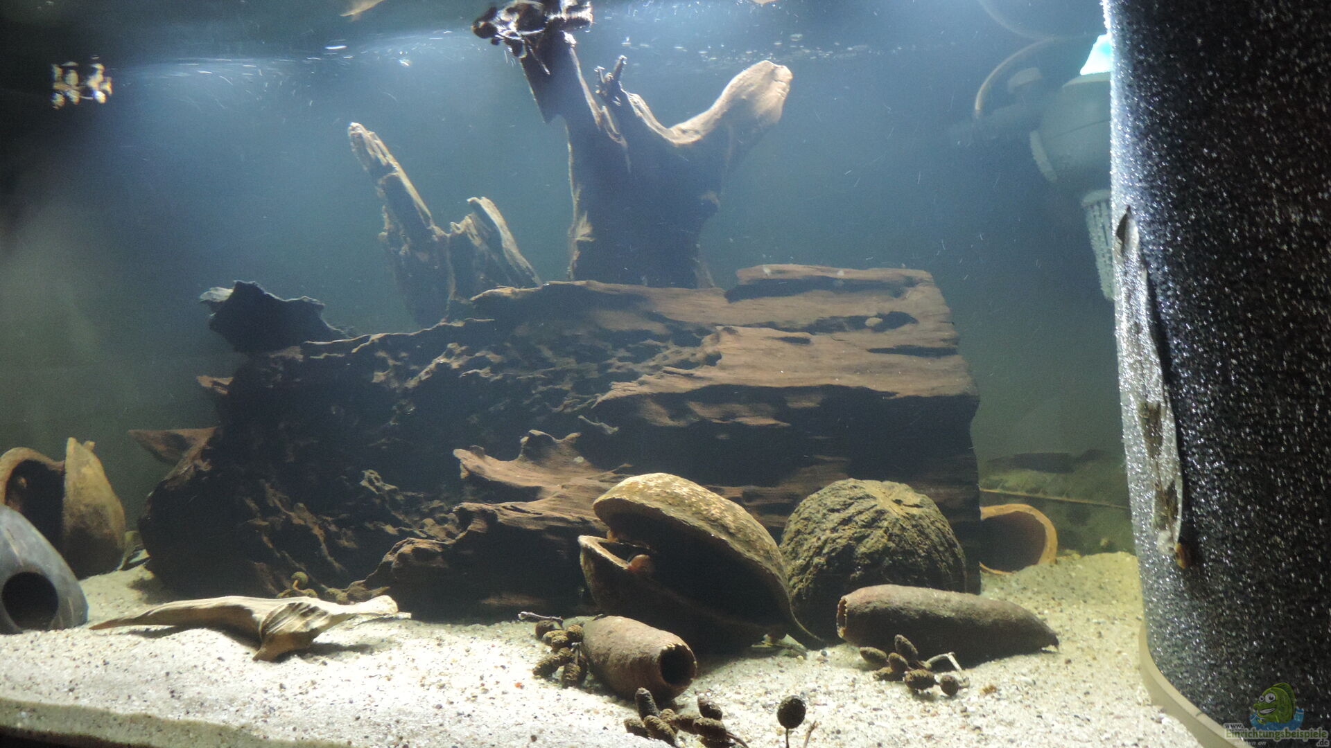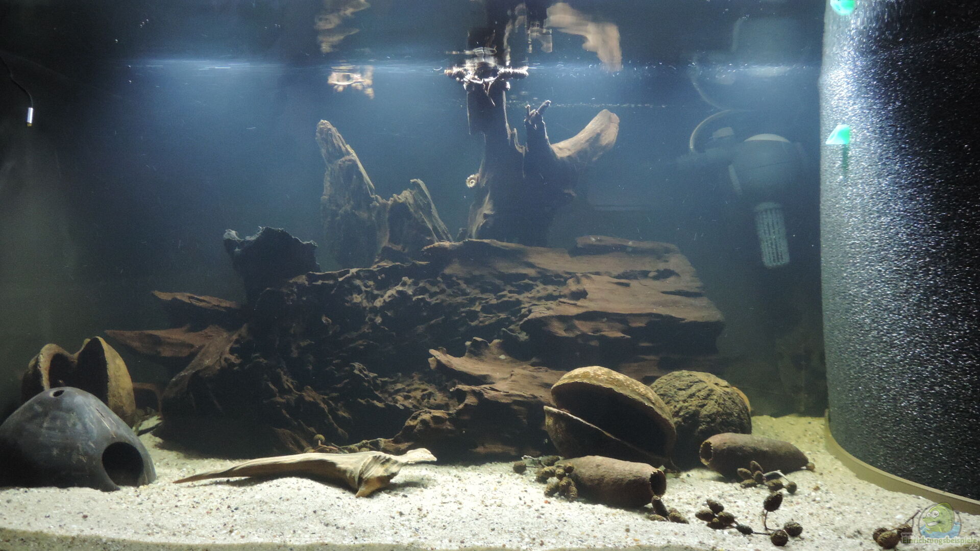 Wasserwechsel wöchentlich 1 bis 2 Drittel, je nach Leitwert. Aufbereitet wird mit Schwarztorf und Erlenzapfen.