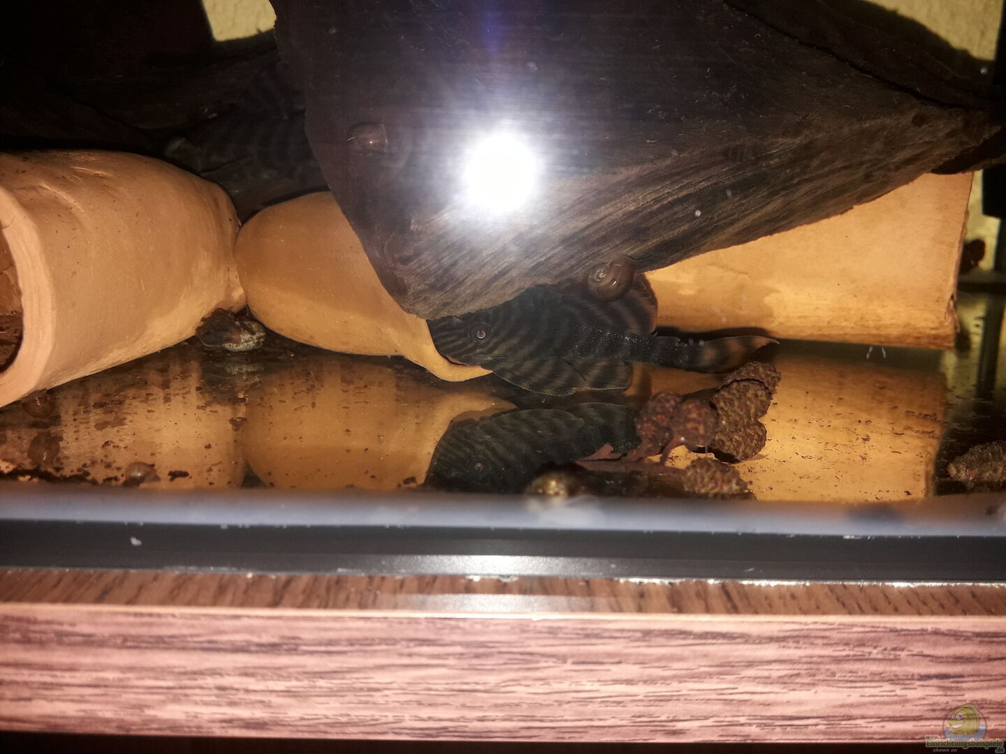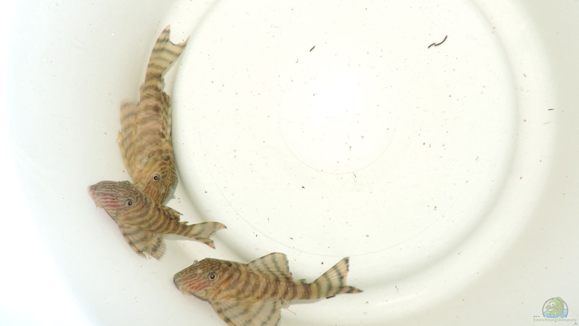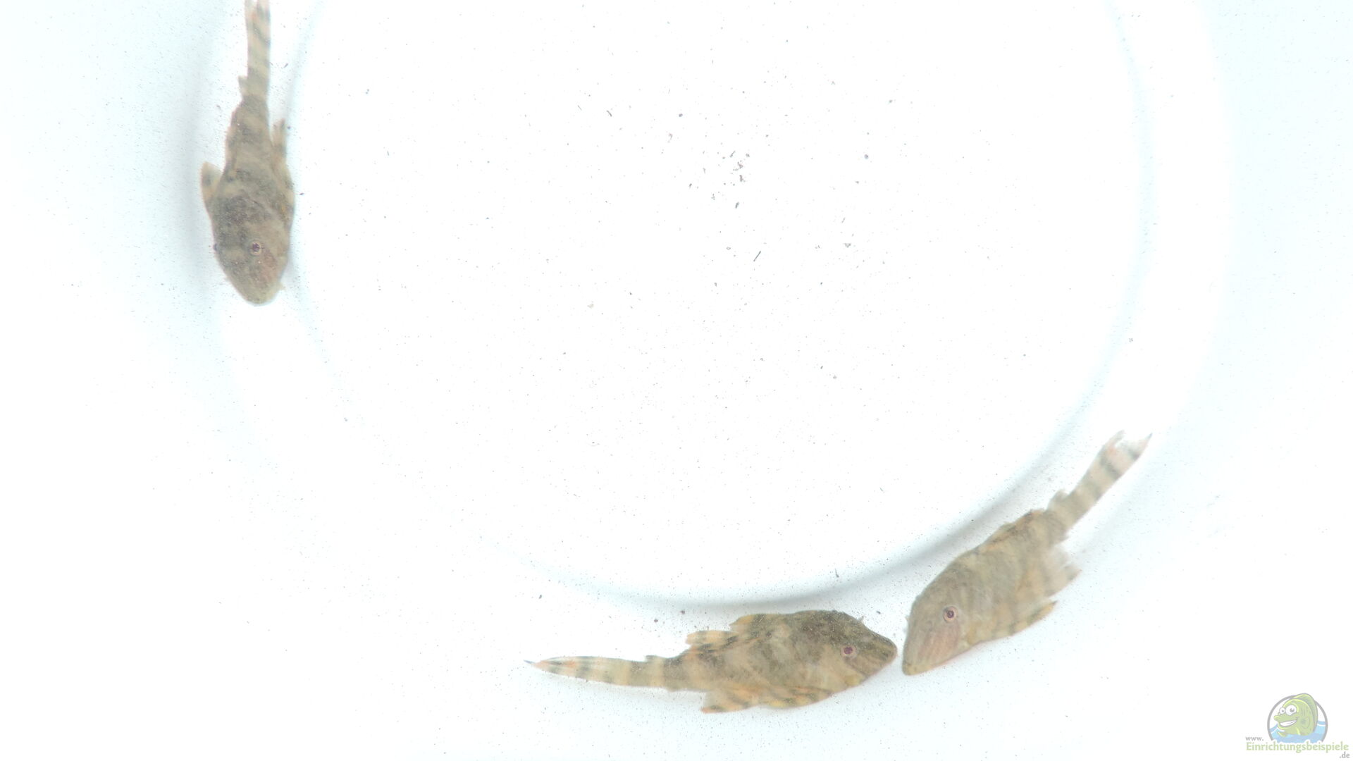 Kaum schwimmt das trifasciata-Weibchen samt Nachwuchs durchs Becken, hat ein anderes Weibchen in der selben Höhle ein Gelege. Am Freitag sind ca. 40 kleine Pandas in ein 25 Liter Becken umgezogen. Heute ist eine kleine Gruppe Hemiloricaria sp. (Vermutlich beni) eingezogen.