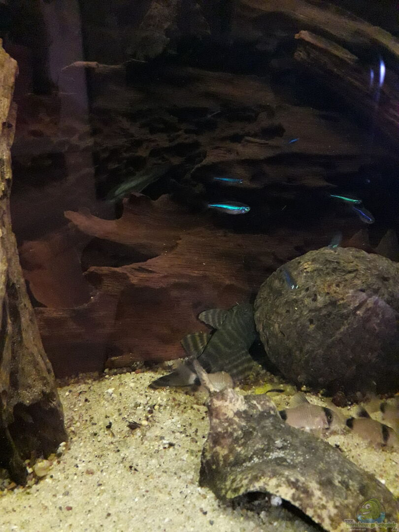 Zu Gunsten der Pandas habe ich die Temperatur auf 25°C gesenkt. Von den kleinen Apistogramma sind leider nurnoch 2 Tiere übrig. In dem Becken schwammen ein paar kleine Corydoras. Hätte nie gedacht, das diese mir die Apistogramma verspeisen. Nun bin ich schlauer und mache diesen Fehler bestimmt nicht nochmal.