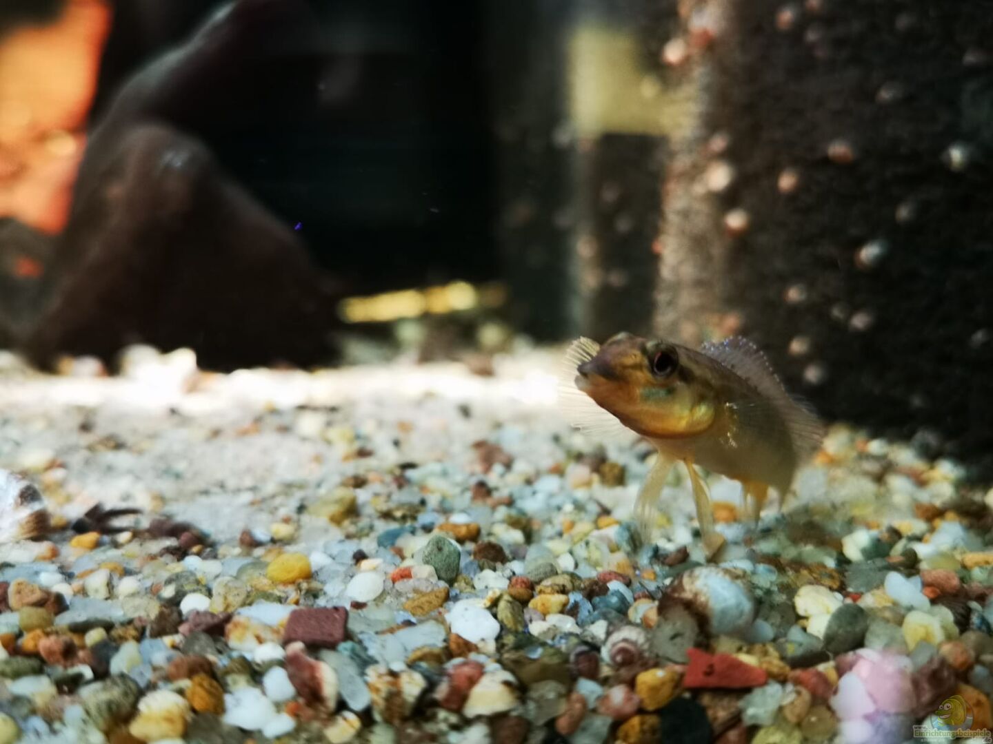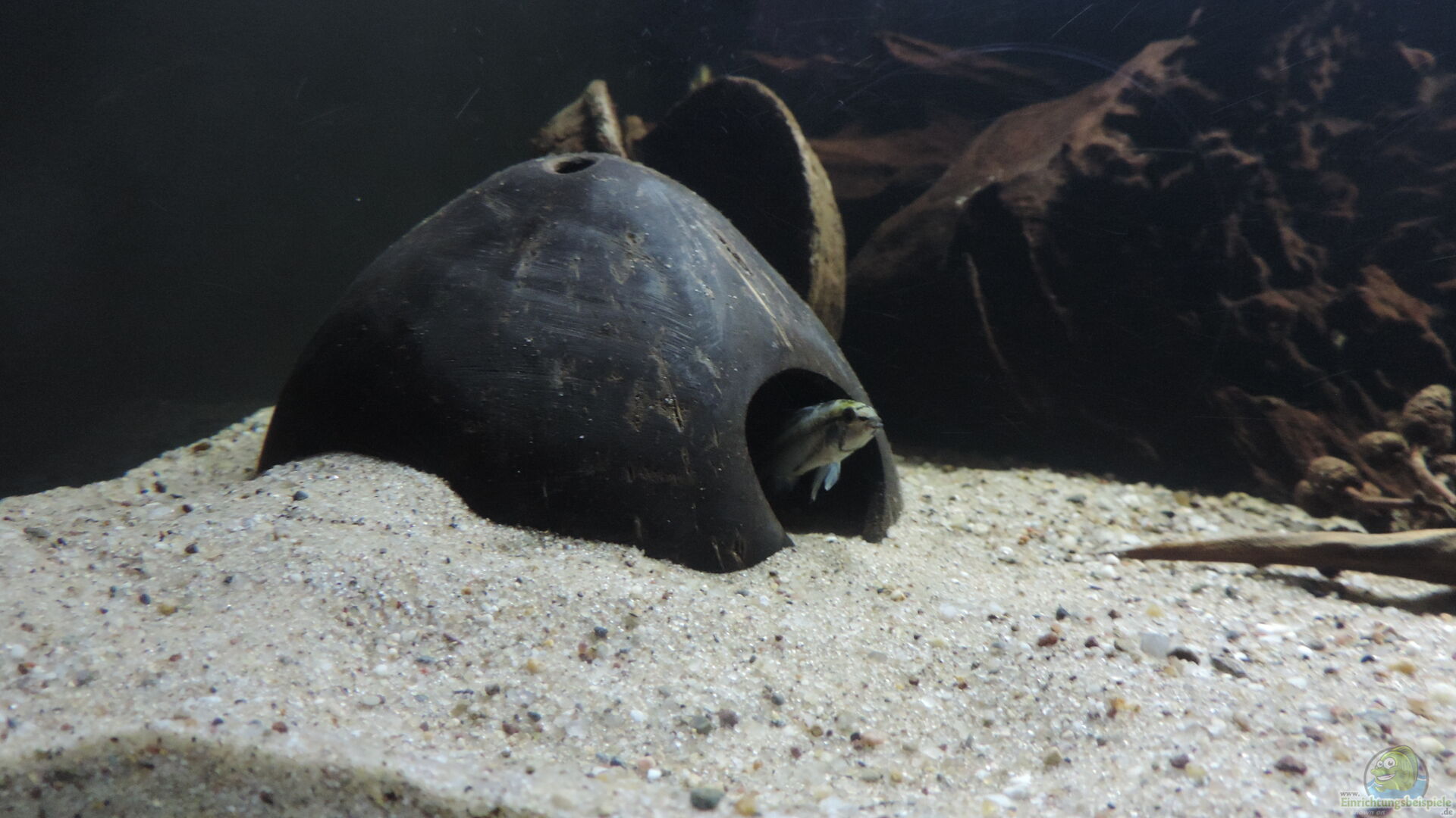 Nachdem ich gestern die Apistogramma beim Balzen beobachten konnte, fand ich in einer der Hornkapsen das Weibchen mit einem Gelege.