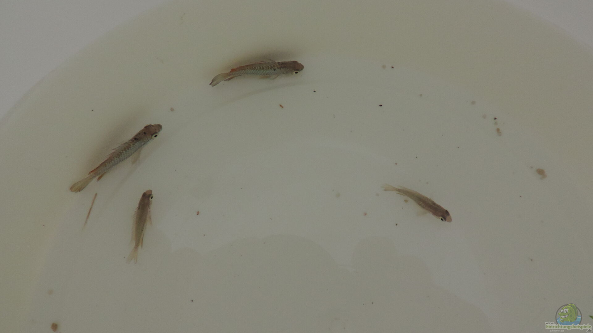 Die kleinen Teleos wachsen sehr gut. Nach mehreren Ausbrüchen sind sie vom Einhängekasten in ein 30 Liter Aquarium umgezogen.