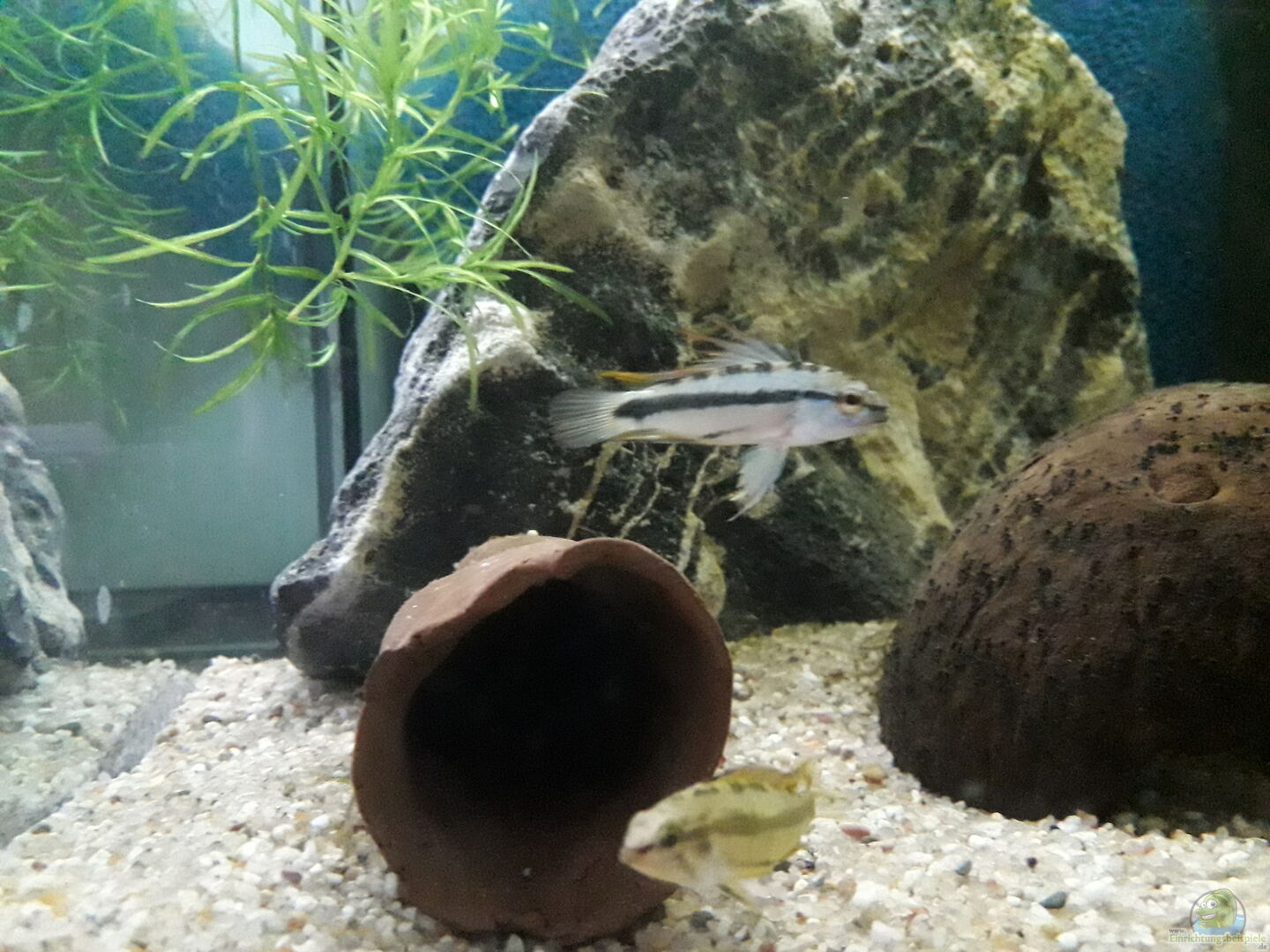 Das Apistogramma-Weibchen ist wieder zurück im Becken. Für weiteren Nachwuchs steht ein weiteres 25 Liter bereit. Die beiden kleinen Apistogramma wachsen recht schnell. Haben schon über 1, 5 cm.
