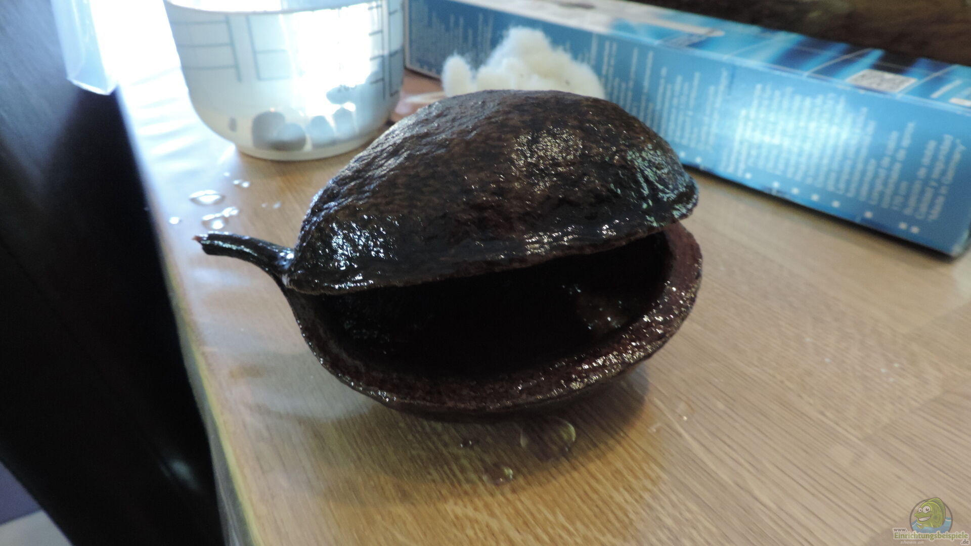 Au??erdem habe ich diese Woche 2 halbierte Froschmaul Schoten ins Becken getan. Diese lagen schon einige Wochen in einem Eimer mit Wasser. Sie haben sich aber leider nach dem ersten Tag im Nassen wieder geschlossen und nicht wieder geöffnet. Eigentlich wollte ich sie schon entsorgen, da kam die Idee mit dem Halbieren.