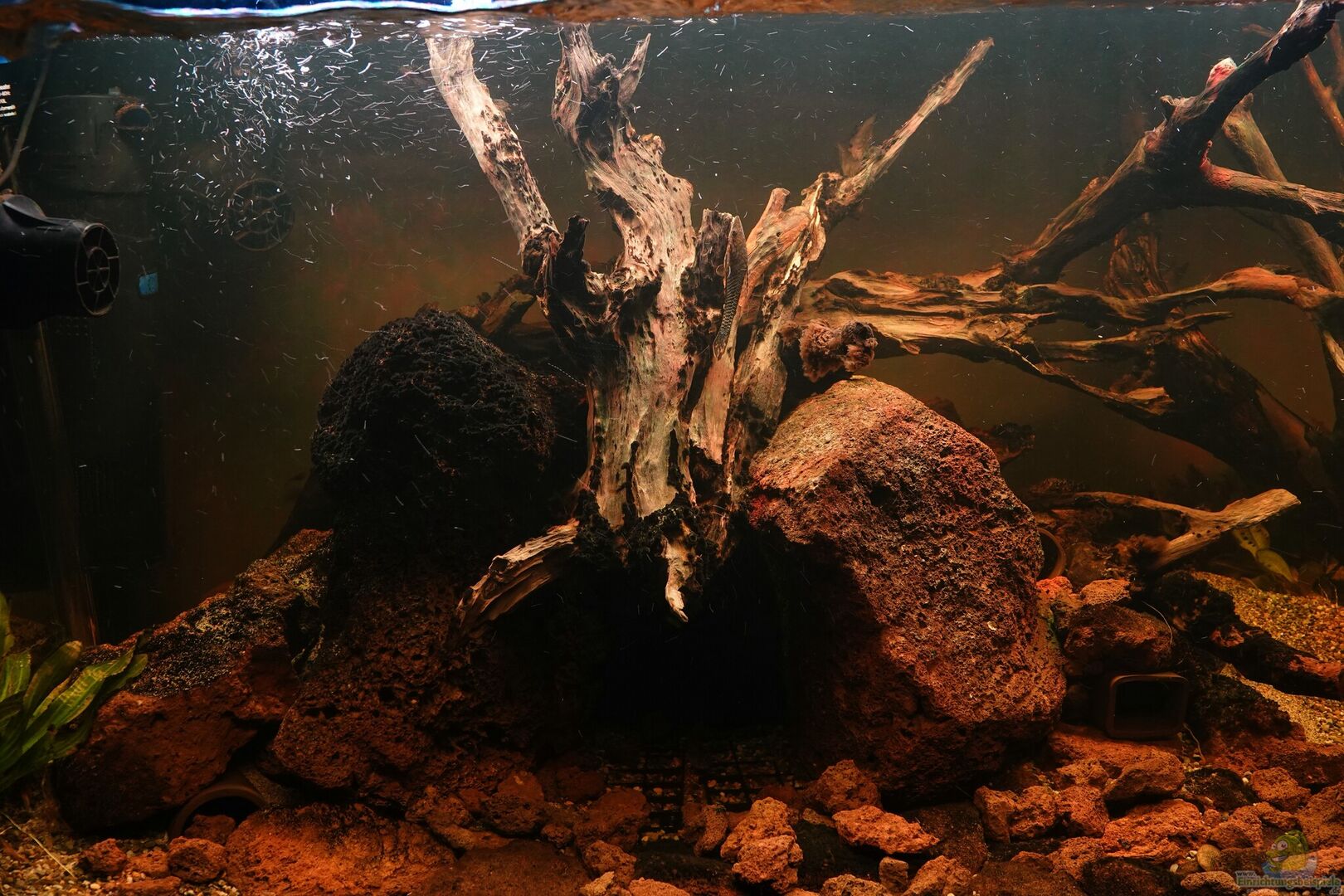 Update vom 01.07.2023: Das Aquarium ist jetzt seit einem Jahr im Betrieb. Ich bin weiterhin äusserst zufrieden mit dem Aquarium. Einzig ein Cyanobakterien Problem an einigen Stellen ist etwas mühsam. Ich warte aber einfach ab, was passiert. Nach gut 10 Monaten Pflege der Rhinodoras gallagheri im Becken habe ich mich entschieden den Tieren eine grössere Höhle aus Lava-Stein zu bauen. Denn mein Wunsch, dass die Tiere nach einer Eingewöhnungsphase auch tagsüber unterwegs sein würden, hat sich nicht erfüllt. Mit der neuen Höhle haben sie deutlich mehr Platz zum verweilen.