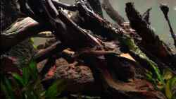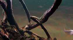 Eine weitere grosse Veränderung war die Neugestaltung des Beckens. Die Beweggründe für diesen Schritt waren, dass der alte Holzaufbau aufgrund der Verrottung der Holzes immer instabiler wurde. Ich habe beim Umbau eine neue Wurzel, welche ich selber in einem Fluss gesammelt habe, verwendet. Diese habe ich vorab 2 Monate gewässert und vor dem Einbau weitgehend entrindet. Ich denke es handelt sich um die Wurzel einer Erle. Diese ist nun die neue Wurzel, welche zwischen den beiden grossen Lavasteinen eingeklemmt ist und dadurch die Höhle der beiden Rhinodoras spp. bildet (den beiden geht es übrigens prächtig). Weiter kamen auch noch einige kleine weitere, käuflich erworbene, Hölzer ins Becken. Das neue Layout soll möglichst realistisch ein Stück Flussbett darstellen. Dass sich die Fische darin wohl zu fühlen scheinen und dies durch ein sehr natürliches Verhalten zeigen, freut mich besonders. So sitzen z.B. die Ancistrus tagsüber in Felsspalten und ritzen, in welche sie gerade so reinpassen und sind dann erst Nacht u.a. an den ganz stark beströmten Stellen unterwegs und weiden Aufwuchs ab.