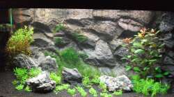 Rückwand und Seitenteil sind nun eingeklebt. Ausserdem wurden die präparierte Moorwurzel, die Dekorationssteine und der Bodengrund in das Becken eingebracht. Danach wurde das Becken befüllt und die Technik angeschlossen, siehe neues Hauptbild. Bepflanzung folgt diese Woche