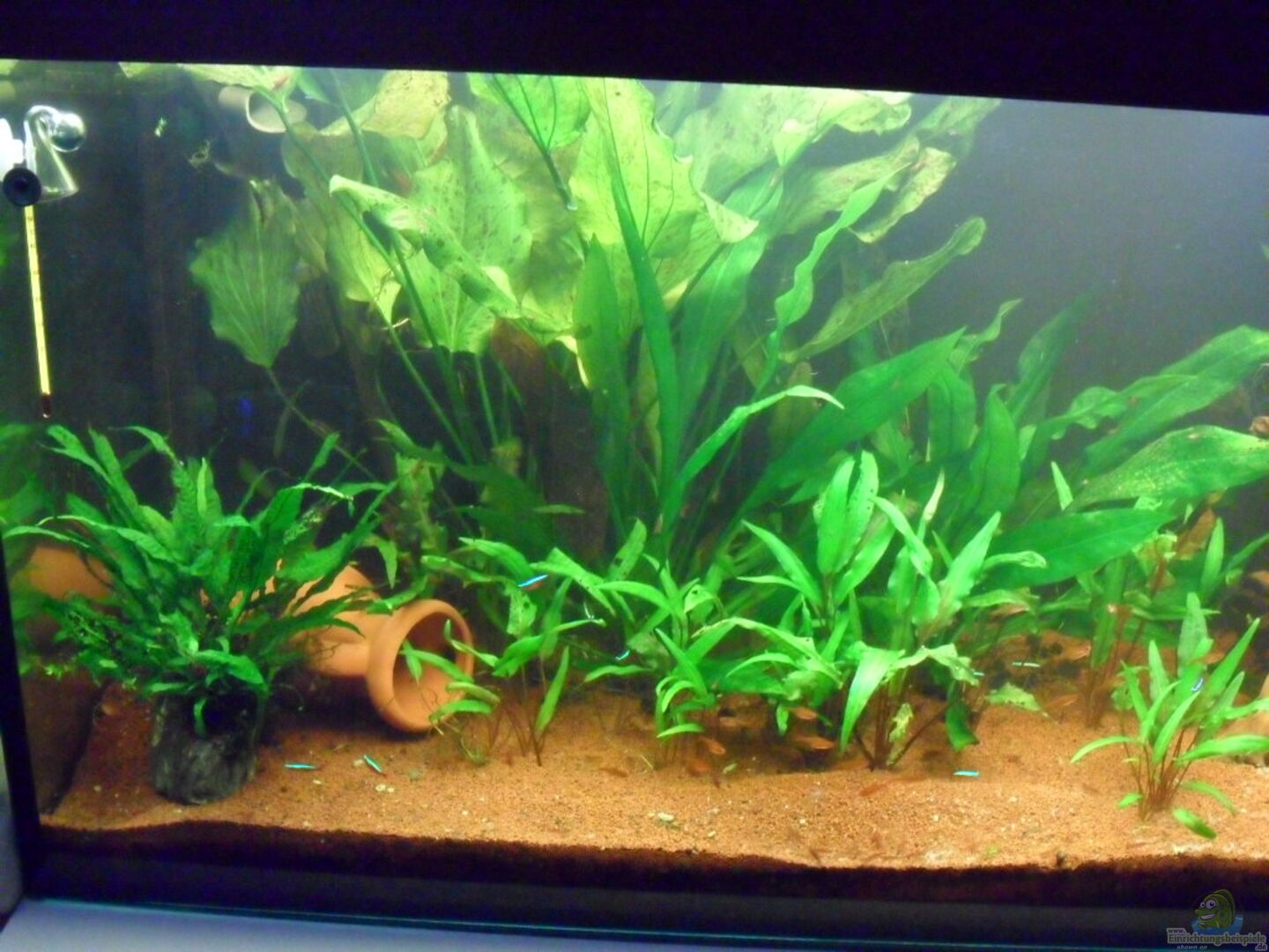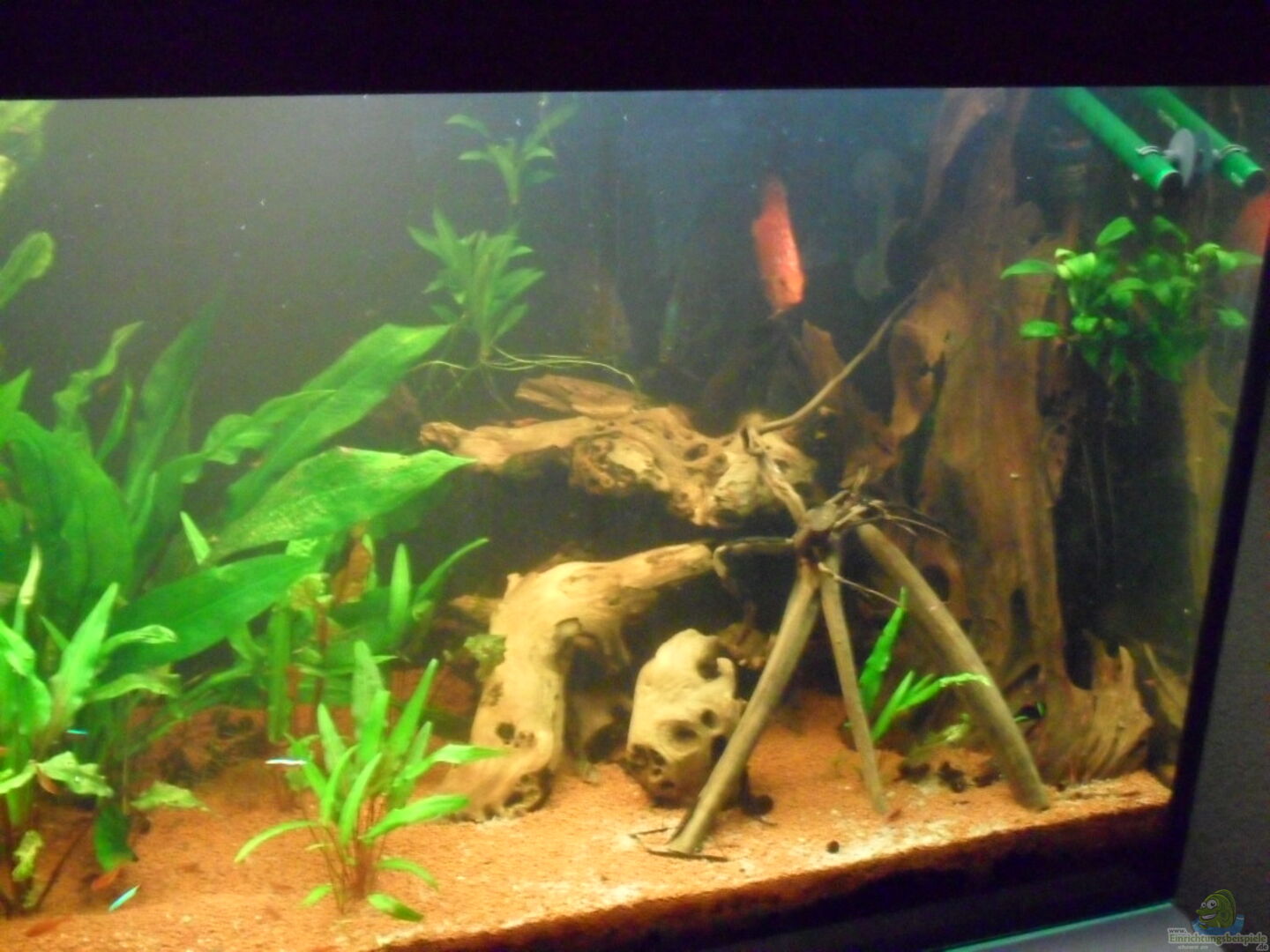Sorry aber ich muss sagen ein klassisches Beispiel dass die Moderatorenempfehlung einfach ignoriert wird, schade! :-( Ich denke die Disken werden bei 60 gefrässigen Salmlern kaum eine Chance haben etwas vom Futter abzubekommen...immerhin hast du ihnen eine Wurzel zum unterstellen gegeben..
