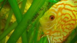 Ist das Laichen einmal begonnen kann man jede Woche bis zu 15 Eier erwarten und woraus die ersten Fische innerhalb von 48 Stunden zu schlüpfen und innerhalb von 72 Stunden zu schwimmen beginnen. Während der ersten Tage ernähren sich die Jungfische von dem Schleim auf der Haut ihrer Eltern und müssen nicht gefüttert werden.