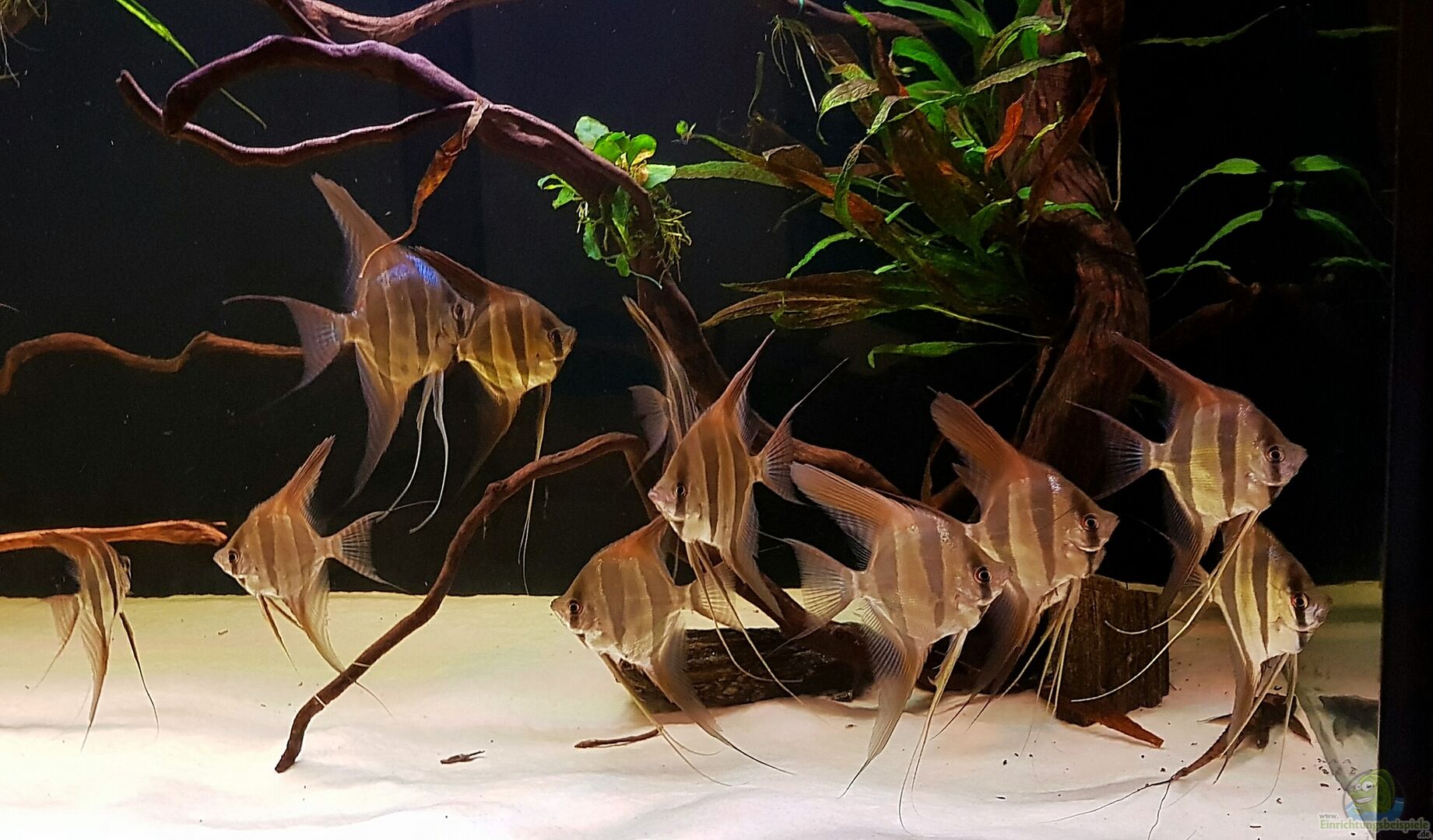 Die 10 neuen Altum sind jetzt 6 Monate alt und fressen noch mehrfach täglich und gleichzeitig lieben sie sehr sauberes Wasser. Daher ist die Einrichtung etwas reduziert.