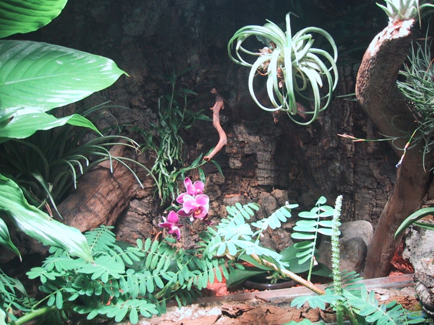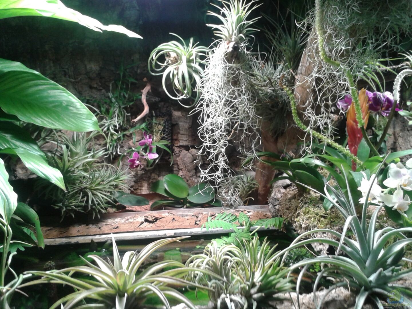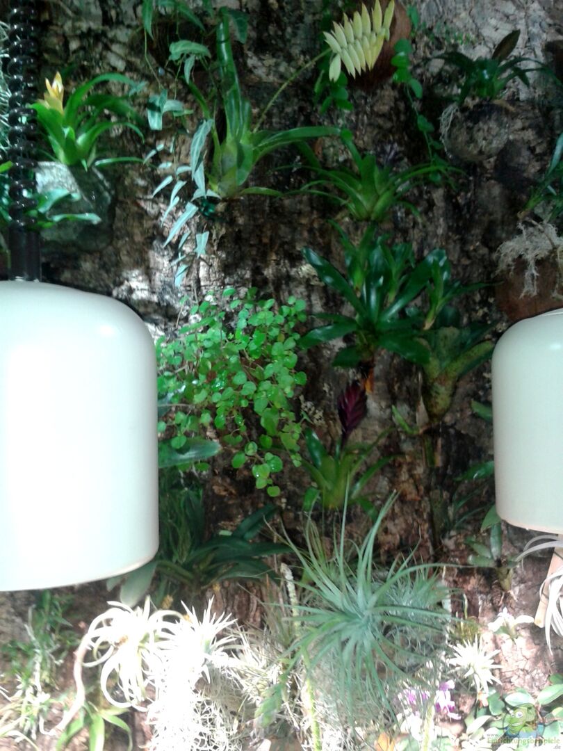Zu meinen Epiphytenstamm in der mitte, über den Becken, wurde noch ein mit Orchideen und Bromelien bepflanzter Korkast gelegt.