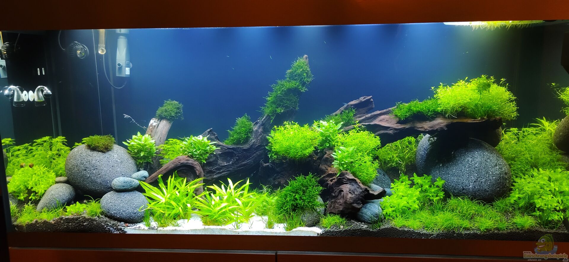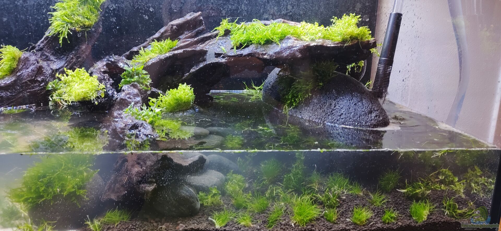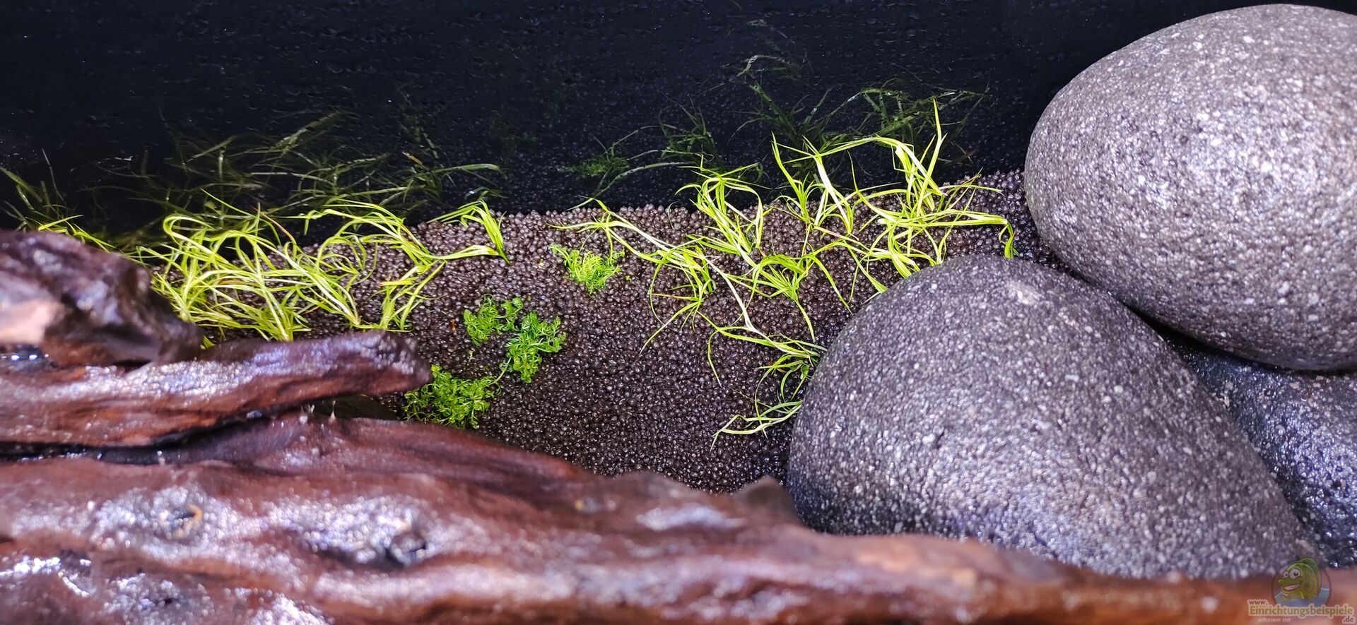 Zu diesem Zeitpunkt befindet sich noch kein tierischer Besatz im Becken (12.2021). Der Besatz wird sich aus Salmlern, Otocinclus und später vielleicht mit einem Päarchen Zwergbuntbarschen vereinigen.
