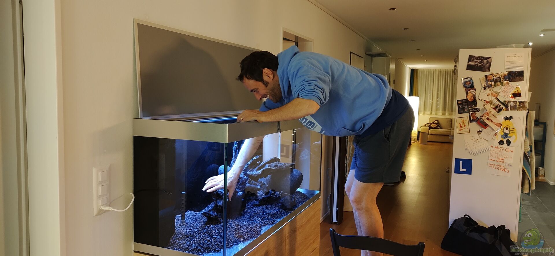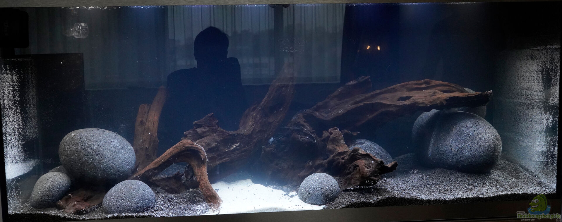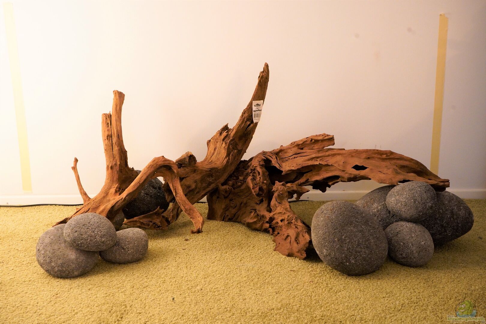 Es sind 3 Stück Mangrovenwurzeln eingebaut. Diese wurde mit dem weiteren Hardscape verklebt. (übrigens inklusive 4 Fingern :-)) Die Vulkansteine liegen durch ihre eigene Schwerkraft an Ort und Stelle. Einige Stellproben erfolgten im Trockenen.