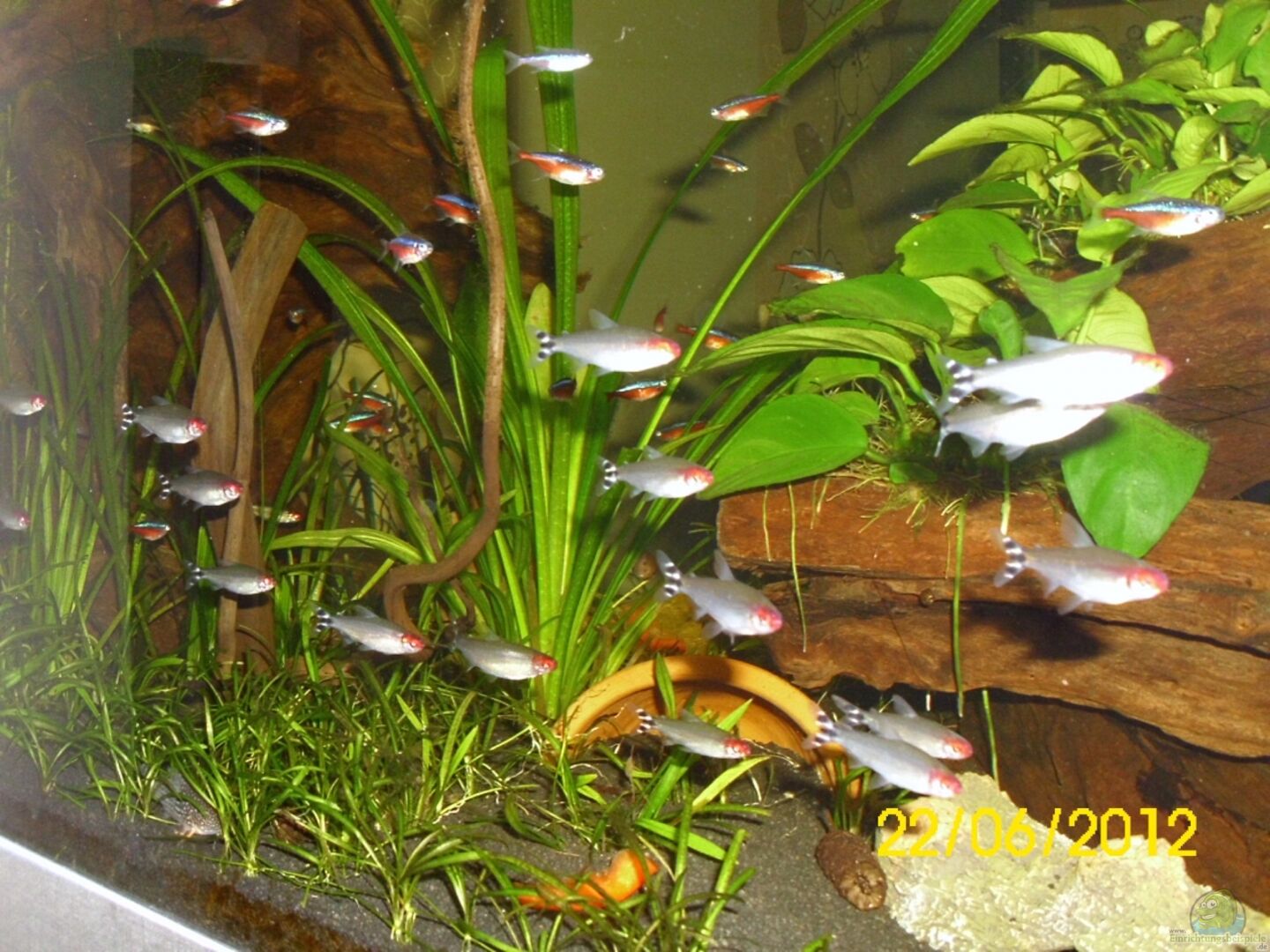 Weiterhin zusätzliche Echinodorus Tenellus als Bodendecker eingepflanzt. Habe aber die Befürchtung das diese nicht genug Licht bekommen. Gebe aber die Hoffnung nicht auf. Ansonsten muss ich mir einen weniger Lichthungrigen Bodendecker aussuchen.
