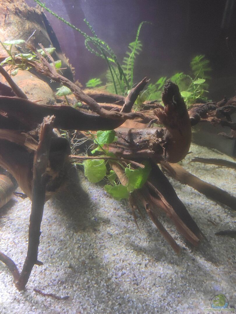 Auf der linken Beckenseite soll im Prinzip die Einrichtung des alte Aquariums wieder aufgebaut werden mit gro??em Wurzelstock und vielen Pflanzen. Die Beckenmitte soll mit einer Flächendeckenden Schicht der Seerose bepflanzt werden. Am rechten Rand und vorne soll freier Sand sichtbar bleiben für die Welse zum gründeln.