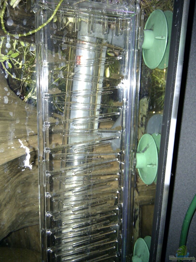 - Eheim Jäger 125 Watt Aquarienheizer 8, platziert hinter dem Hamburger Mattenfilter.