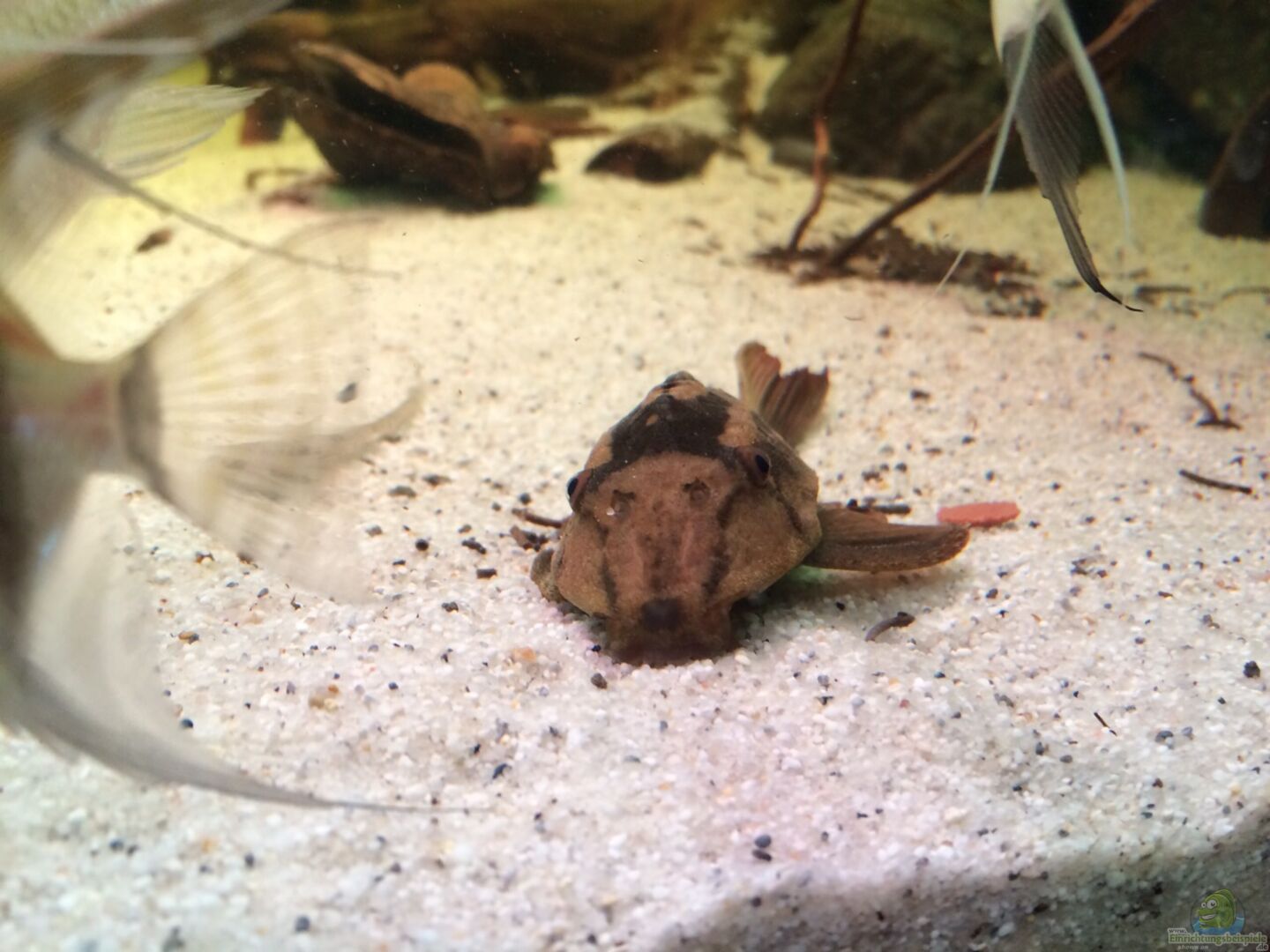Ernährung: ??berwiegend pflanzliche Kost, geht an alle Art von Aquarienpflanzen, besser reine Welsbecken oder ebend ausreichend füttern. Gurke oder sonstige Gemüse-Häppchen werden gierig verspeisst. Welstabs sind der absolute Renner (meine Erfahrung), ansonsten Gemüsestückchen. Wichtige Bestandteile in der Ernährung bilden Gehölze im Aquarium, da die Welse daraus lebenswichtige Zellulose aufnehmen. Tierische Kost wird genauso genommen bzw. benötigt.