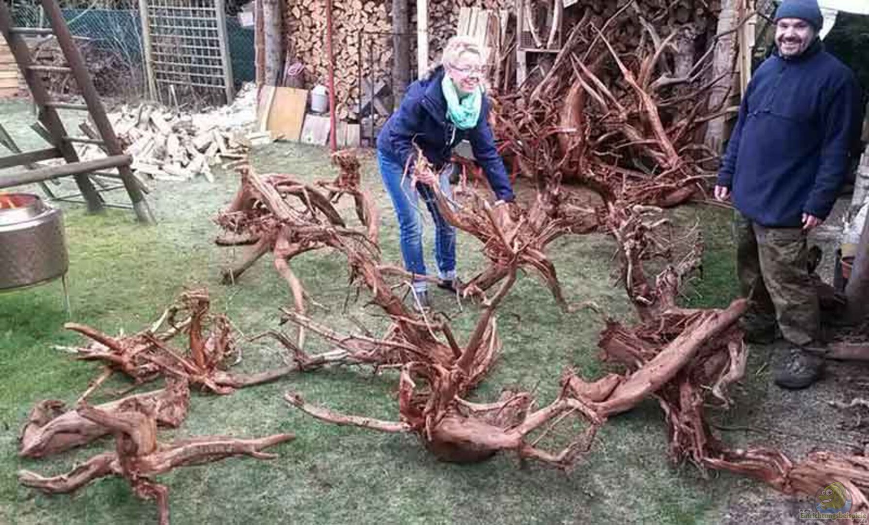 Wir haben zum Glück über Facebook einen tollen "Wurzelzieher" gefunden, der von uns aus gut erreichbar ist und der eine immense Auswahl an Moorkienwurzeln auf Lager hat und diese auch noch zu einem fairen Preis verkauft. Vielen Dank Thomas!